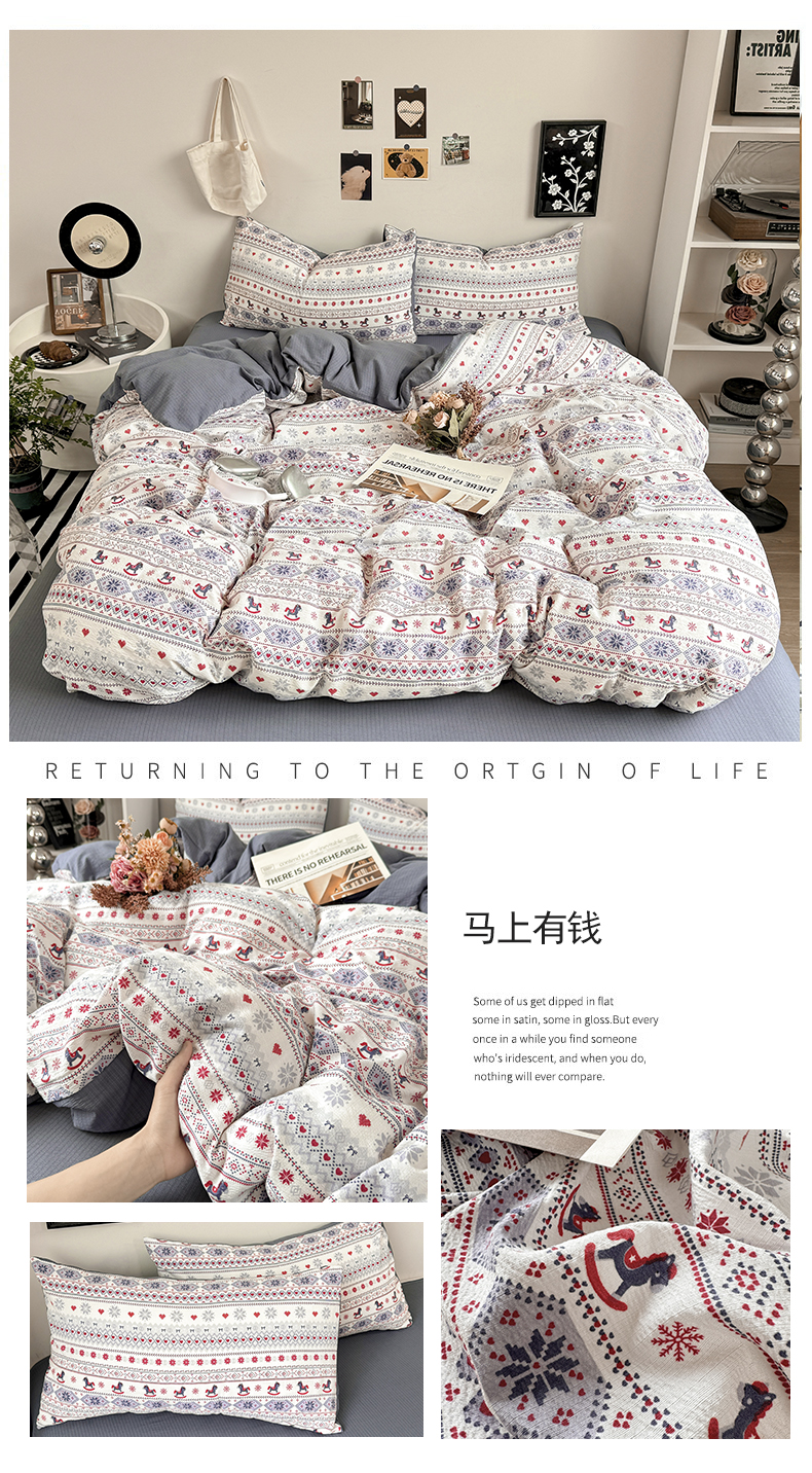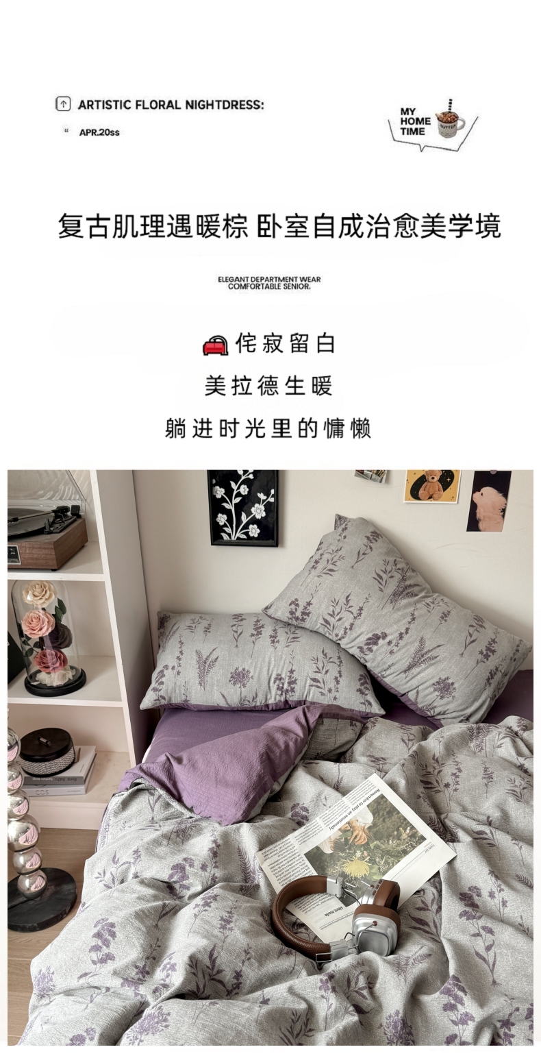 当前位置: 91家纺网 > 商品网购 > 床品套件 > 四件套 > 化纤活性四件套 > 雅阁尔家纺 2026新款轻奢复古美拉德风泡芙棉四件套水洗棉双层纱床单被套学生宿舍三件套床笠款 风华若诗