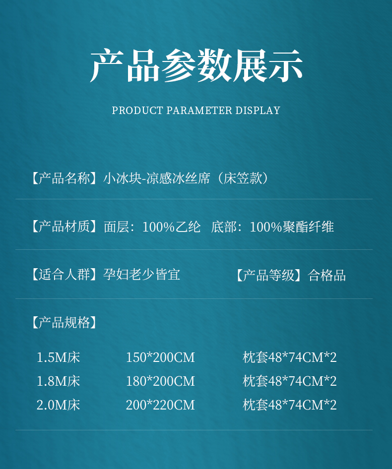 当前位置: 91家纺网 > 商品网购 > 床上用品 > 凉席 > 凉席套件 > 小牛席业 【正宗凉感】2023新款小冰块-凉感冰丝席(床笠款)凉席藤席竹席乳胶席 小冰块-凉感冰丝席-床笠款(绿色)