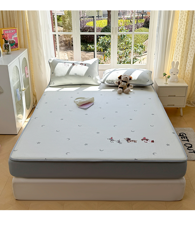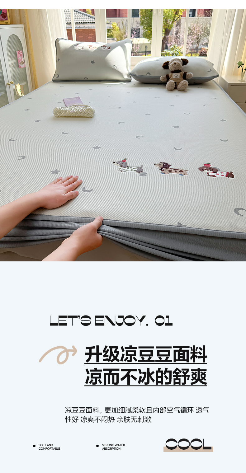 商品名称:凯罗 2026凯罗新款卡通印加绣花小红书爆款凉豆豆绣花床笠可水洗床笠款 淘气腊肠犬