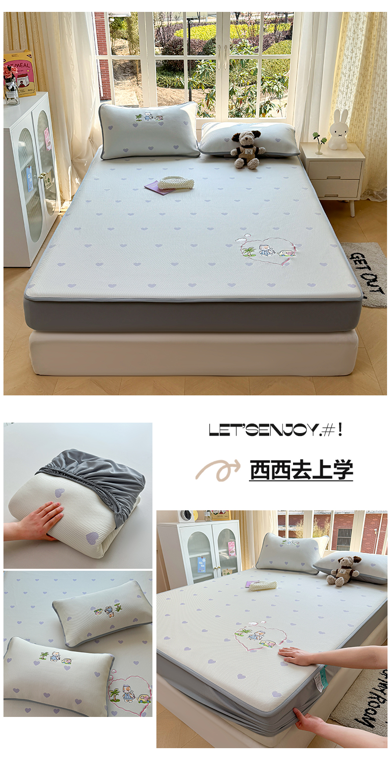 (总)凯罗 2026新款可水洗凉豆豆夏季席子凉席三件套,Hello--熊,爱心小熊--浅粉,敦敦熊--浅粉,敦敦熊--蓝灰,爱心小熊-咖,花儿朵朵--浅粉
