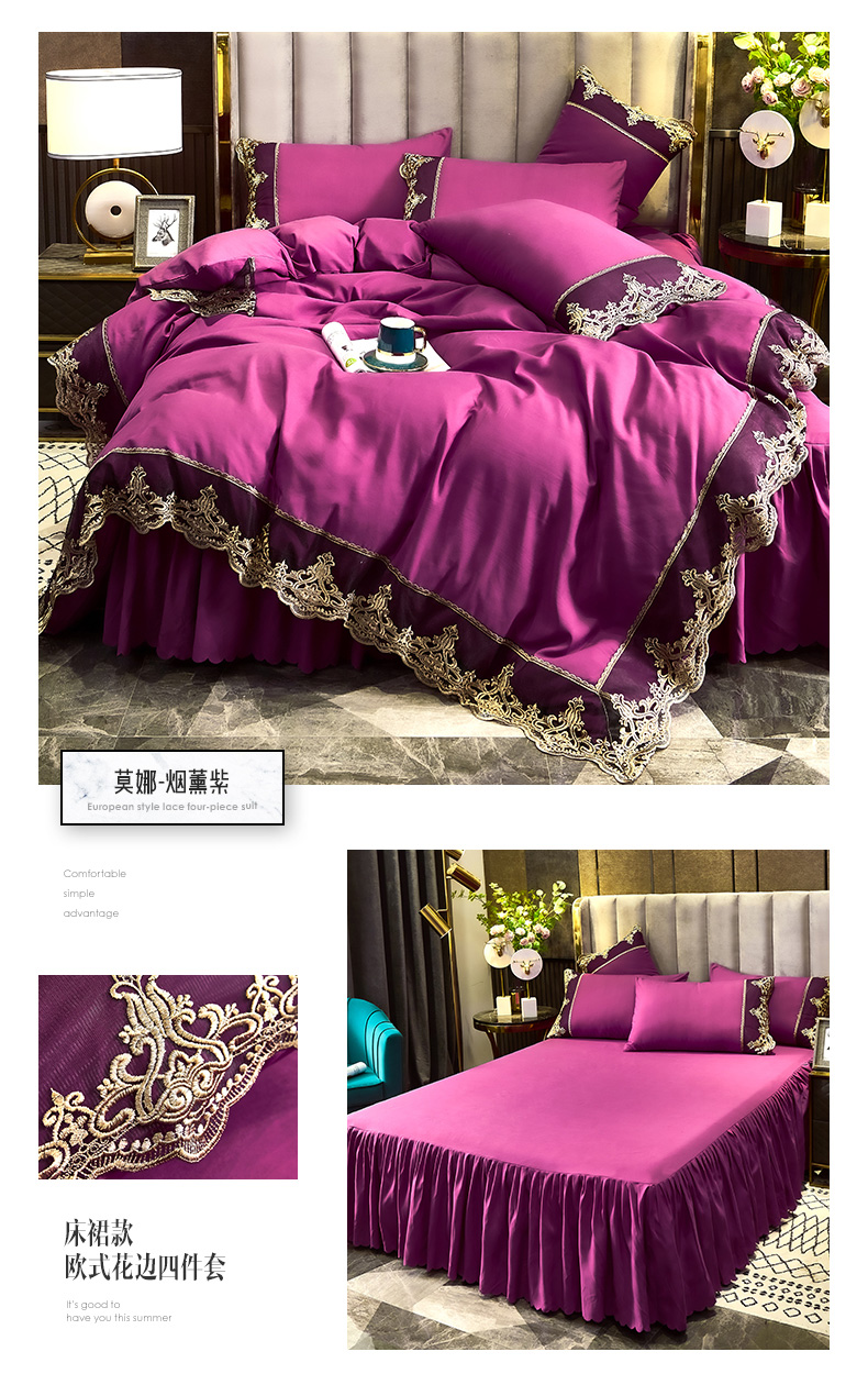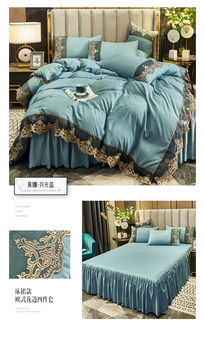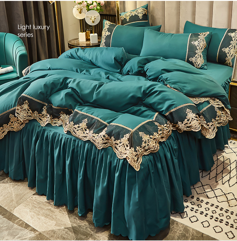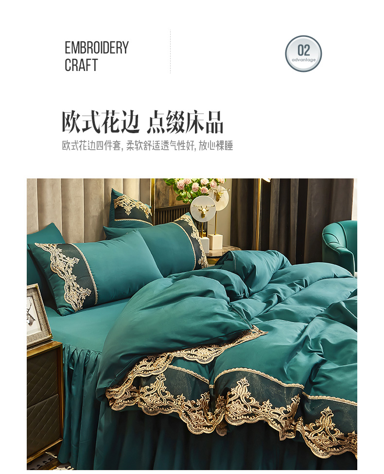 当前位置: 91家纺网 > 商品网购 > 床品套件 > 四件套 > 普通磨毛四件套 > 沐珩家纺 2026新款轻奢典藏艺术亲肤磨毛欧式花边床裙款四件套-莫娜 莫娜-孔雀绿