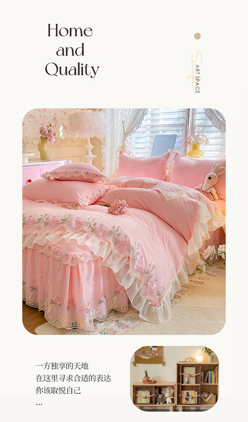 (总)(总)专柜品质苏米娜家纺2026春夏韩版法式公主风水洗棉床盖款多功能二合一被套 夏被床盖四件套--花颜系列,花颜-樱花粉 ,花颜-梦幻蓝 ,花颜-奶油白 ,花颜-嫩芽绿 ,花颜-香芋紫
