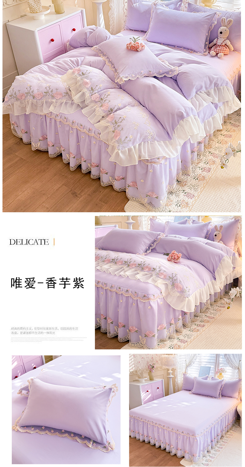 商品名称:漫布云家纺 2026春夏超柔水洗棉床裙款四件套-唯爱系列 唯爱-香芋紫