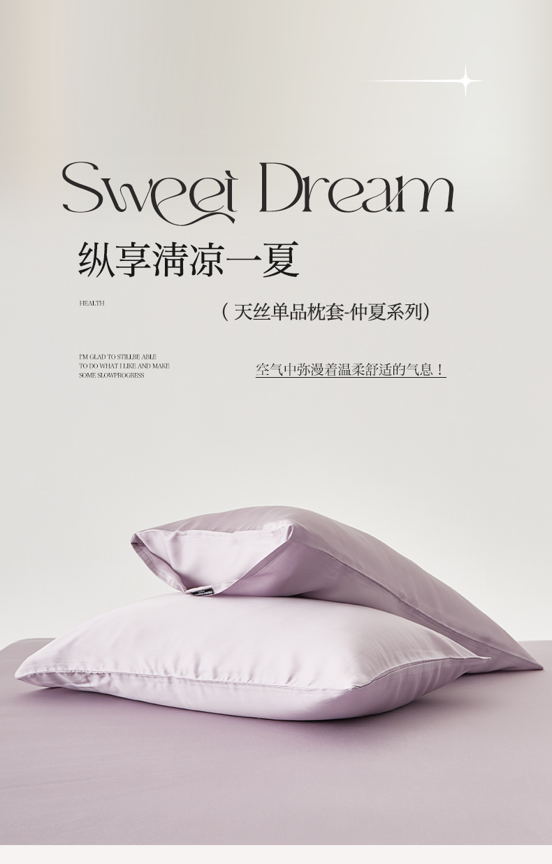 EH家居 2026春夏新款简约纯色天丝单品枕套(AA版)(床单床笠同款) 柔紫色