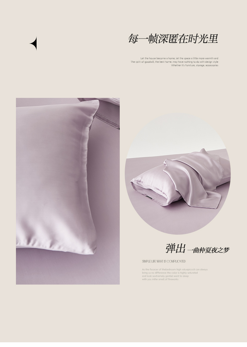 商品名称:EH家居 2026春夏新款简约纯色天丝单品枕套(AA版)(床单床笠同款) 柔紫色