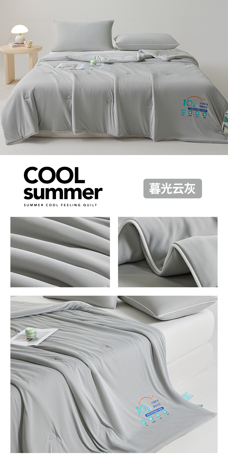 商品名称:宝士康家纺 2026春夏新款10A抗菌凉感丝夏被夏凉被空调被 暮光云灰