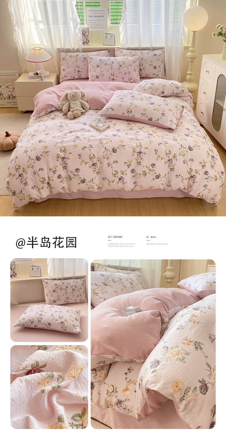 当前位置: 91家纺网 > 商品网购 > 床品套件 > 四件套 > 其它四件套 > 红日子纺织品 2026春夏云感复古+小清新皱皱纱四件套 米兰-兰