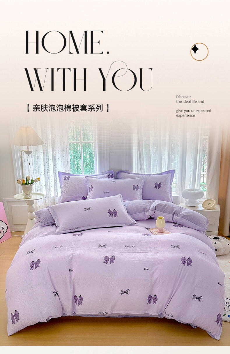 商品名称:家贝爱 2026新款轻氧泡泡棉被套 梦幻结