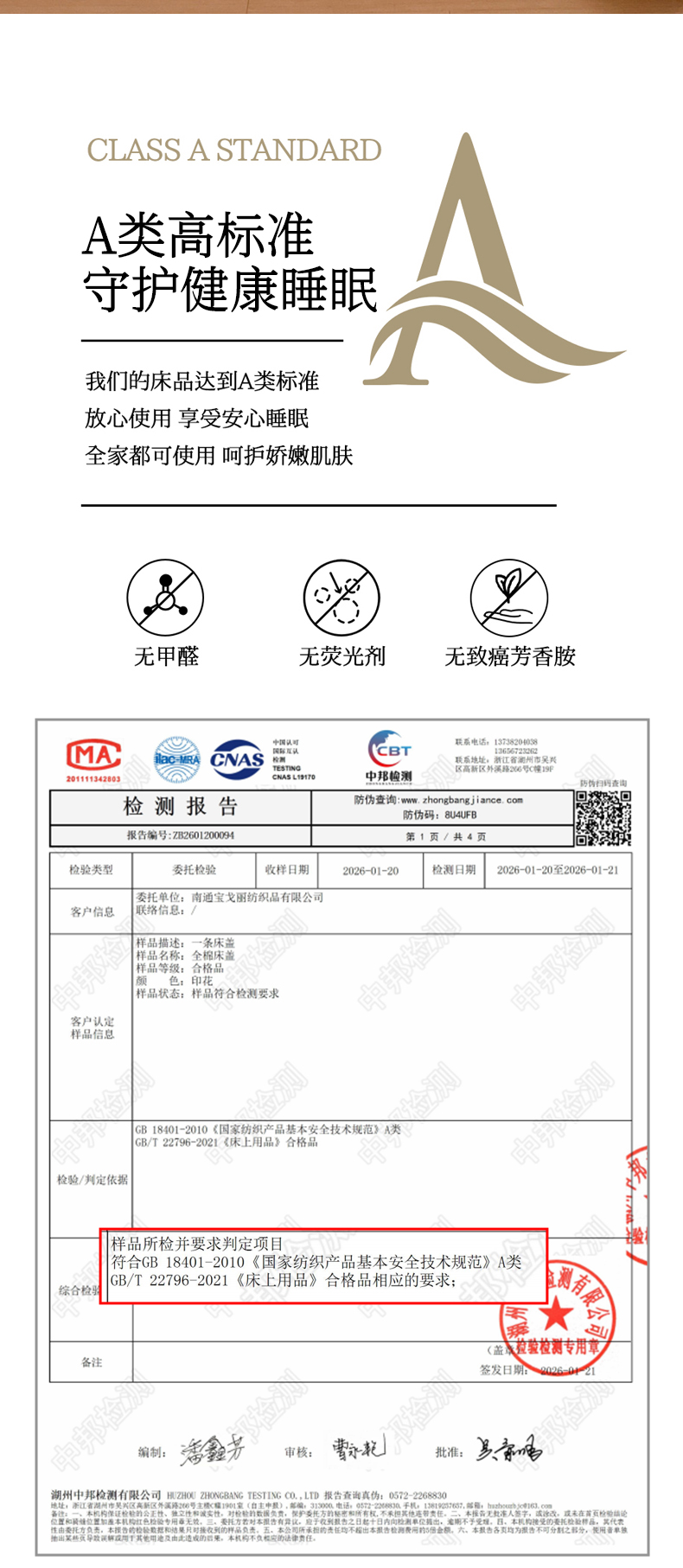 4、通州区市场监管局川姜分局友情提醒:近期针对抗静电,无静电,抗菌防螨,及有关舒适度,百分比的举报高发。为不影响商品正常销售,请各商家高度重视,自检自查及时整改,谢谢配合!