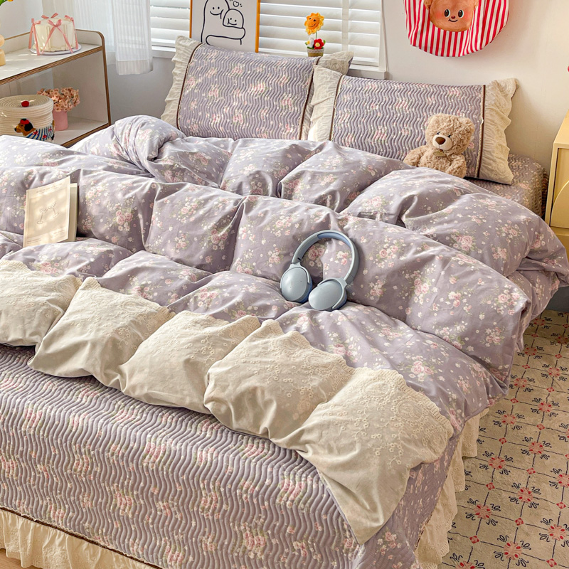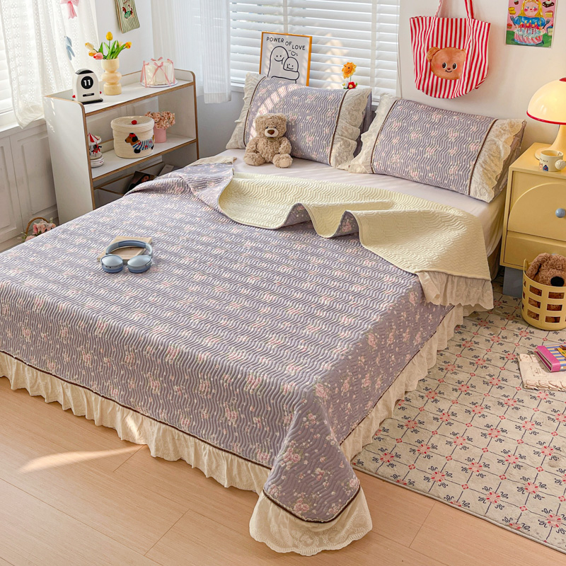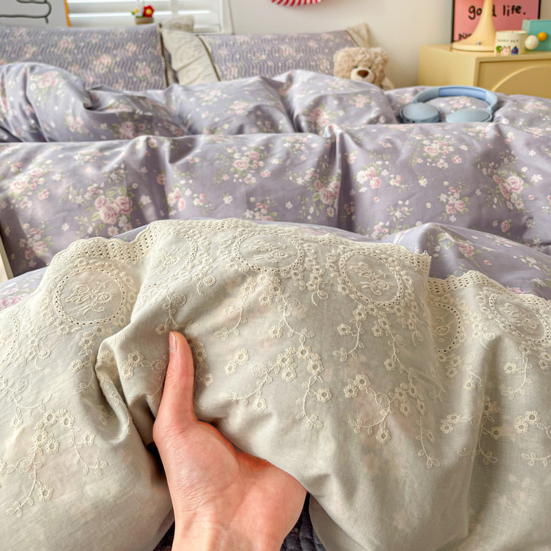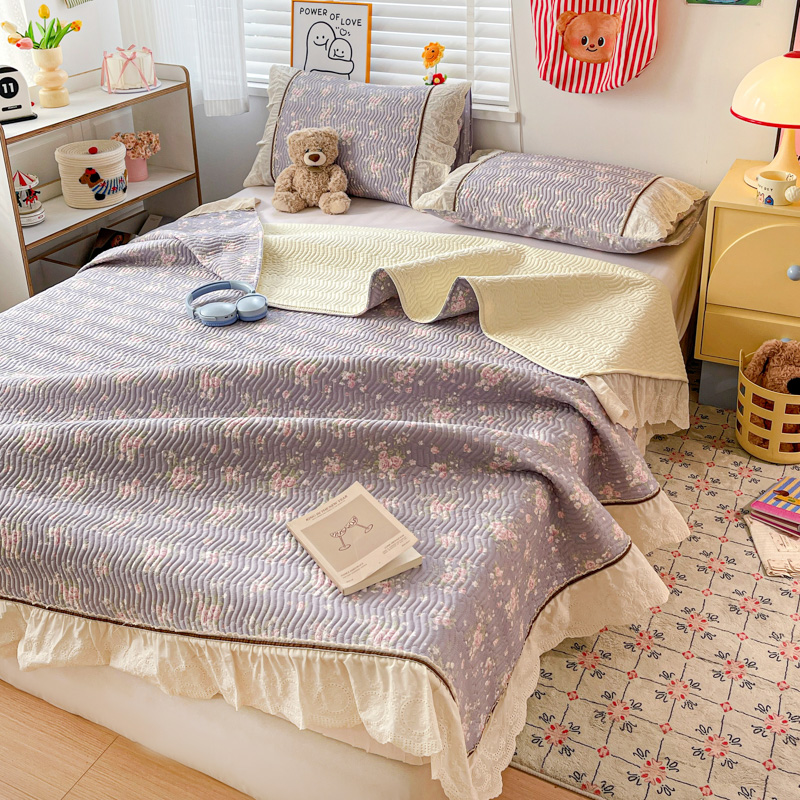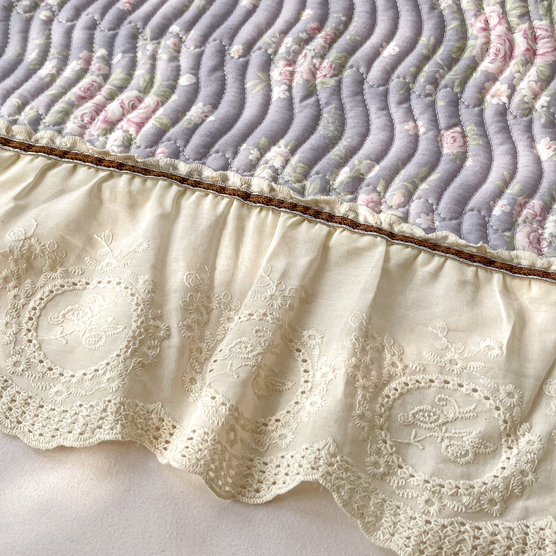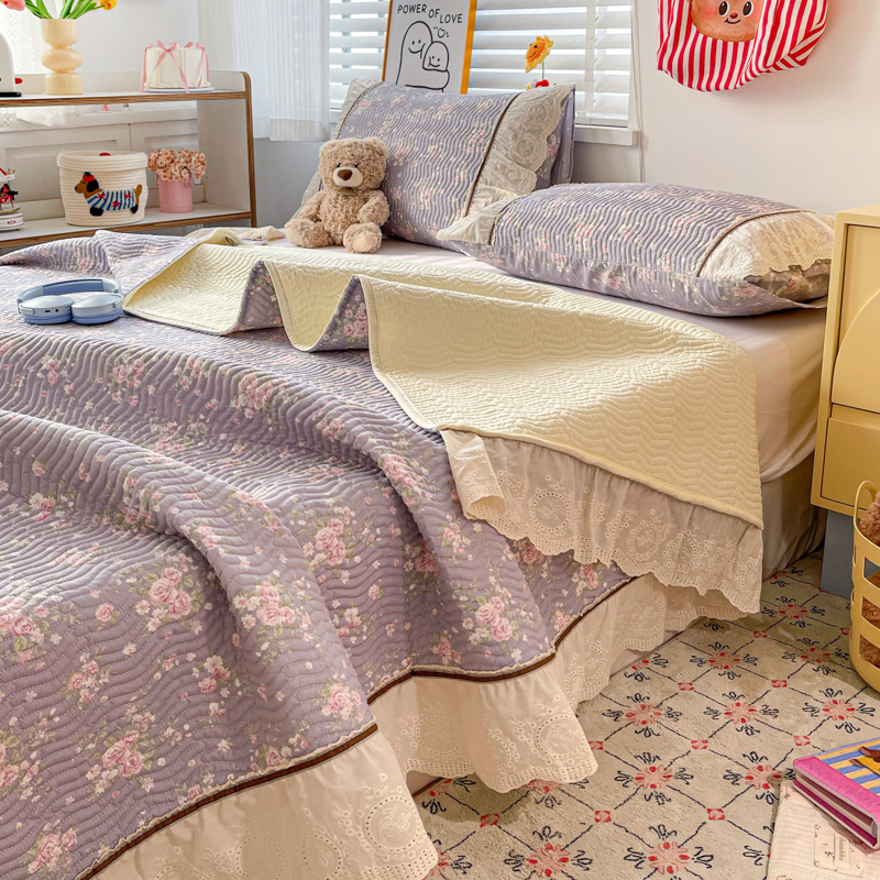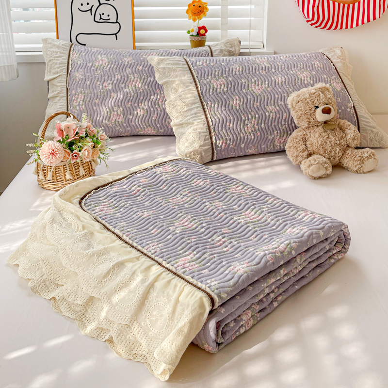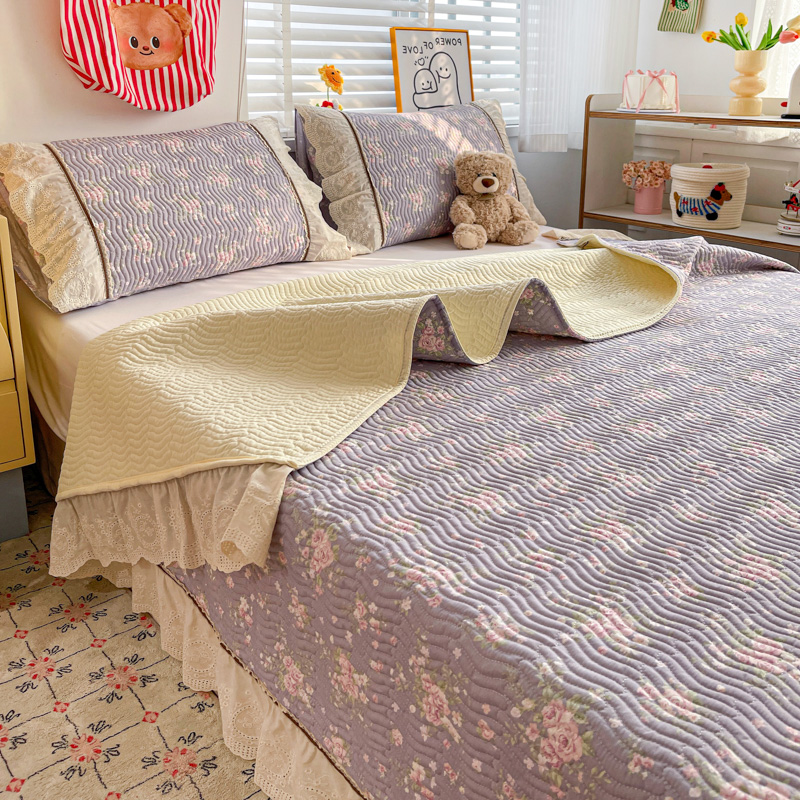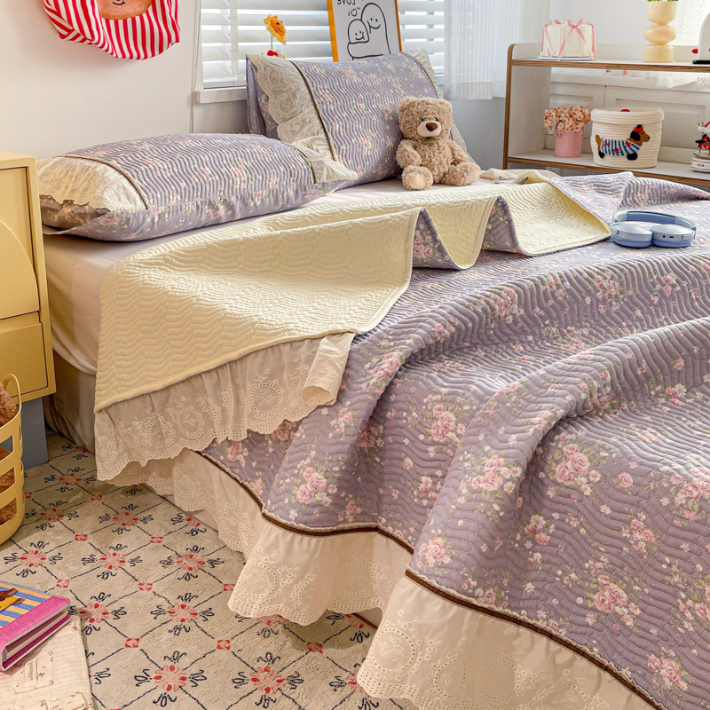 当前位置: 91家纺网 > 商品网购 > 床上用品 > 床盖 > 岚吉家纺 2026年新款A类法式全棉花边床盖三件套四件套 雨蝶-紫