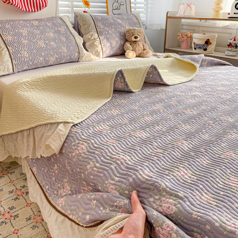 岚吉家纺 2026年新款A类法式全棉花边床盖三件套四件套 雨蝶-紫