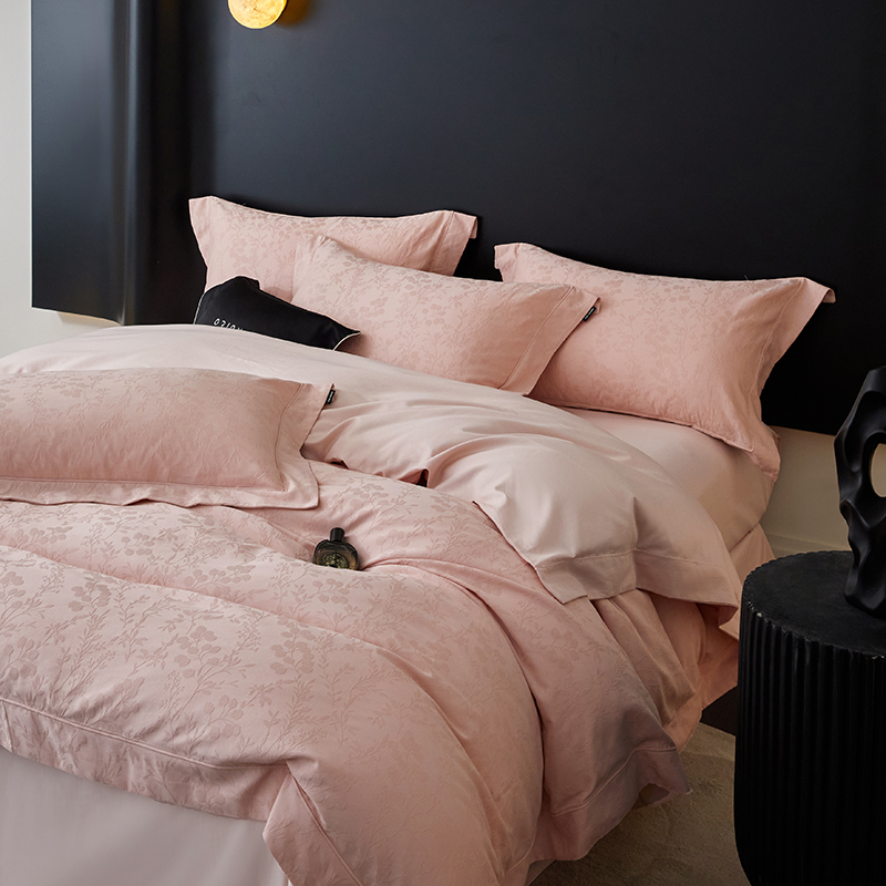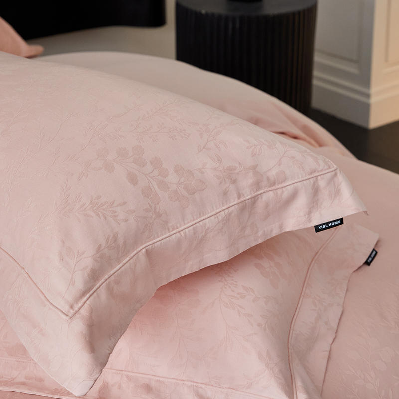 薏思家纺 2026年新款全棉色织水洗提花 杏芙微醺-粉