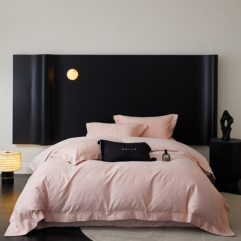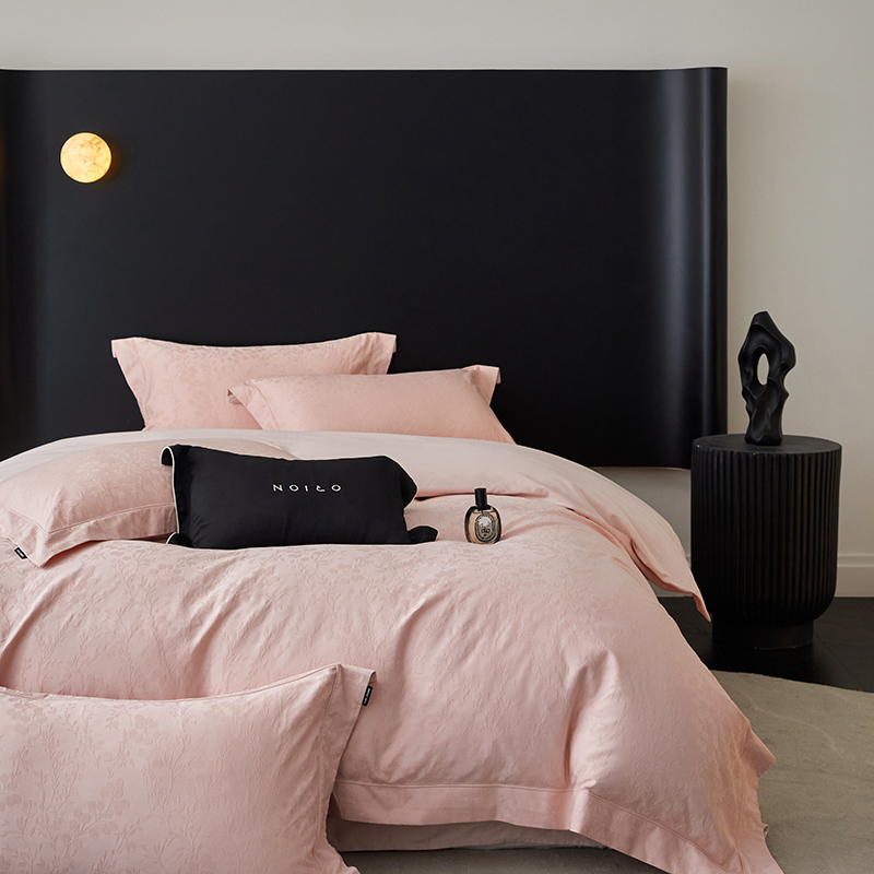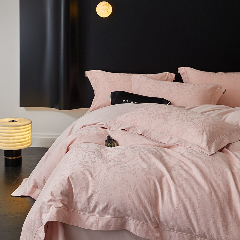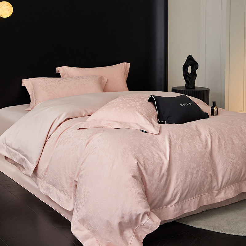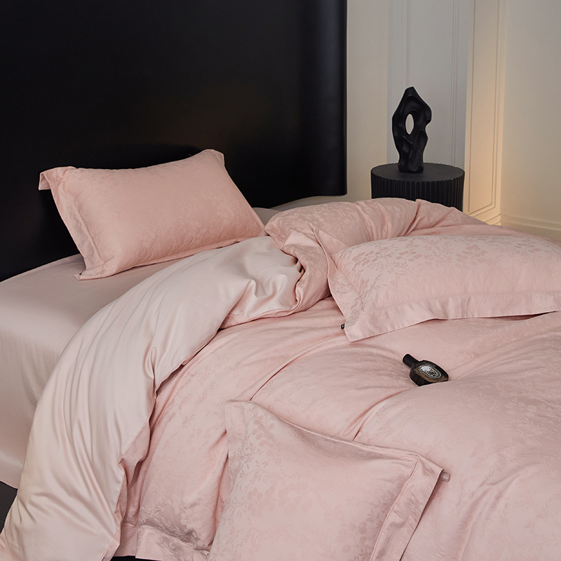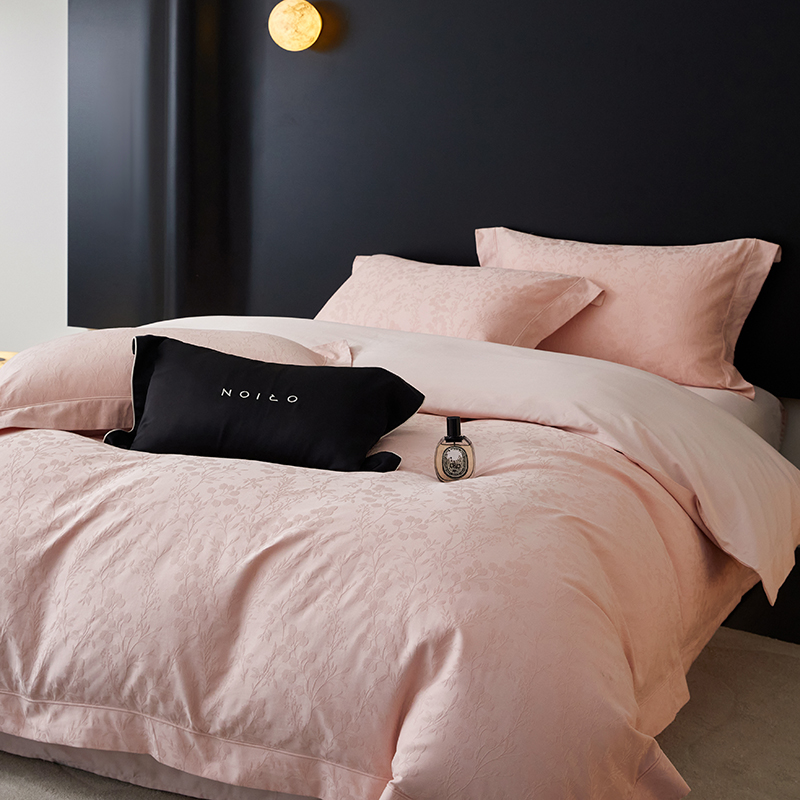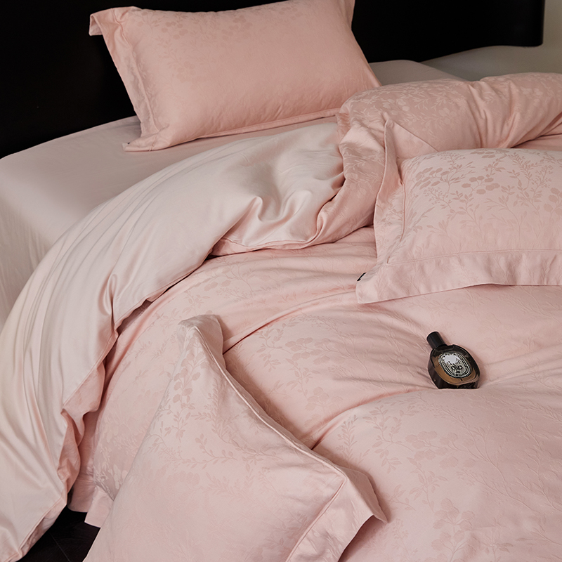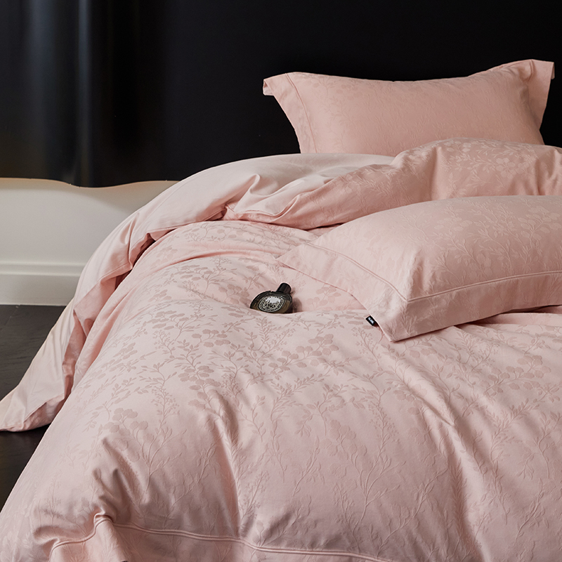 商品名称:薏思家纺 2026年新款全棉色织水洗提花 杏芙微醺-粉