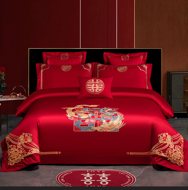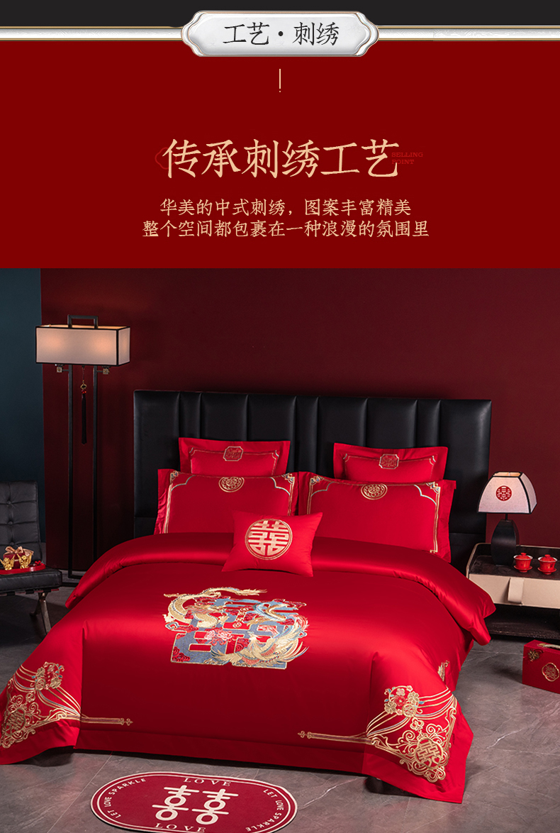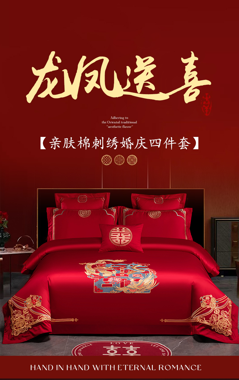 当前位置: 91家纺网 > 商品网购 > 床品套件 > 四件套 > 婚庆四件套 > 博之洋婚庆 2026新款新中式亲肤棉婚庆大红刺绣系列四件套 龙凤送喜