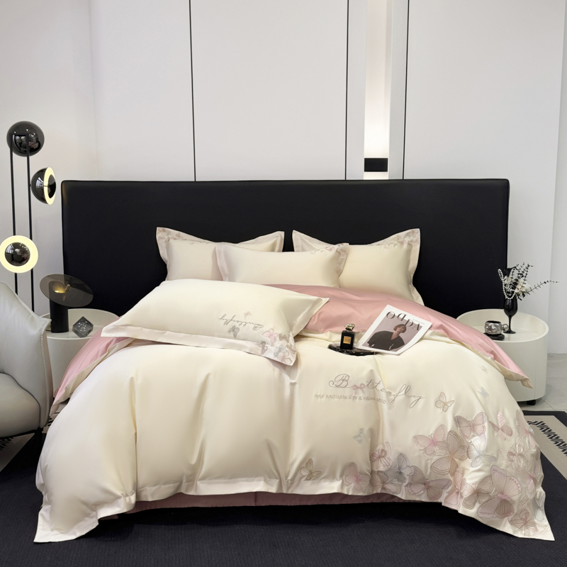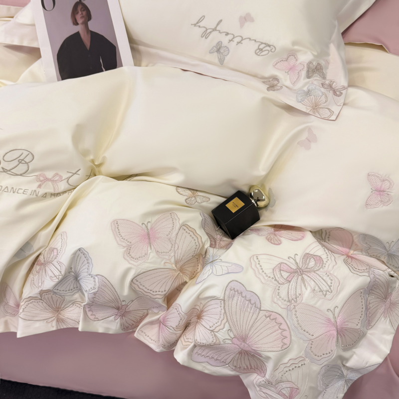 (总)女子家纺 2026新款刺绣亲肤棉轻奢四件套 花蝶,白+粉,繁星蓝,少女粉,香芋紫,星辰蓝