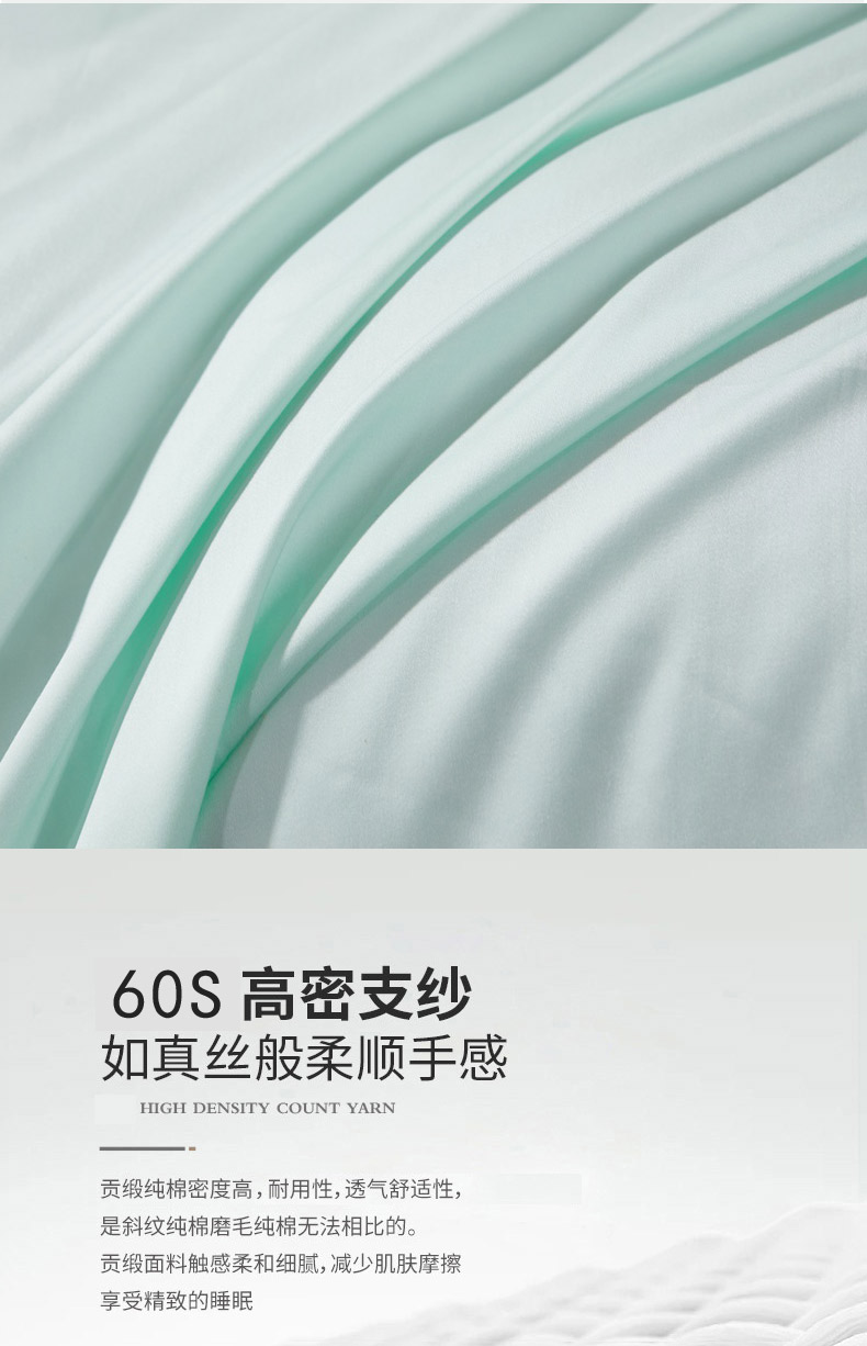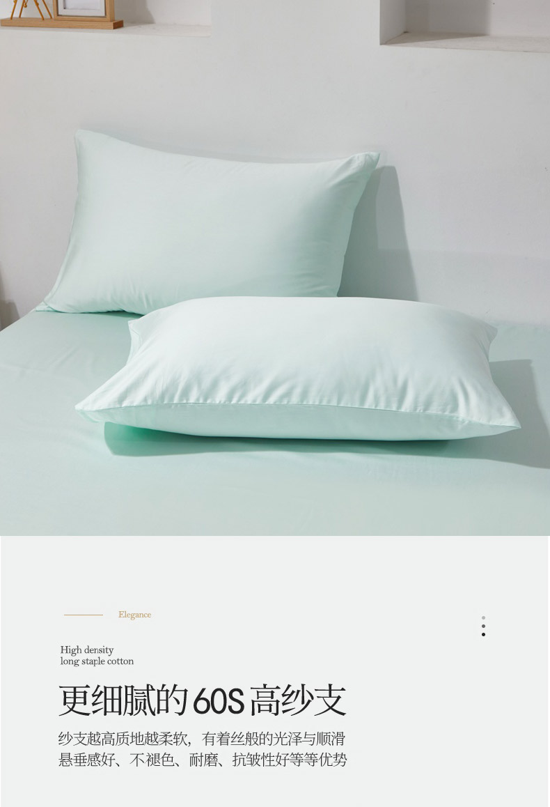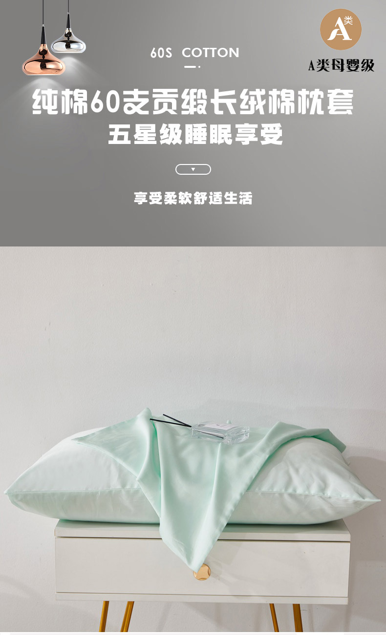 商品名称:晶缦家纺 2026新款全棉A类纯棉60支贡缎长绒棉纯色单枕套单品枕套枕套单件 琳琅-天青绿