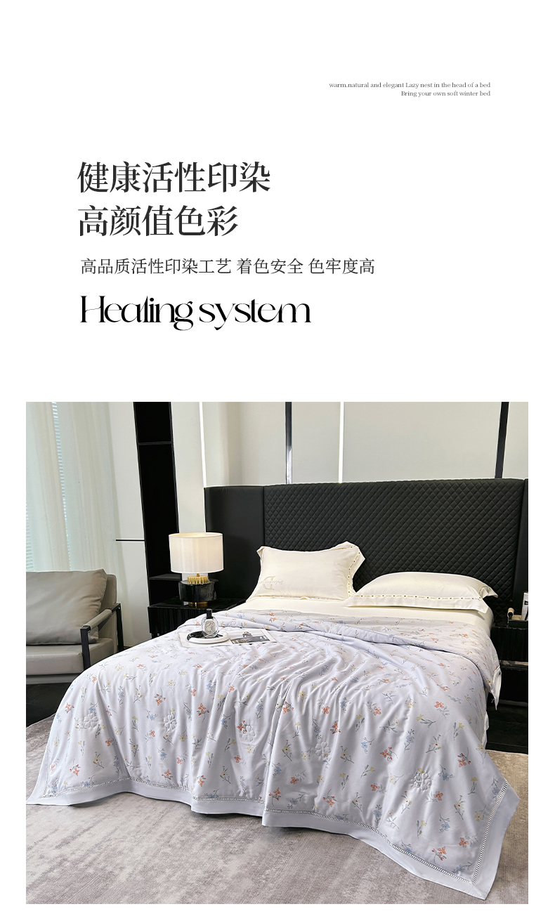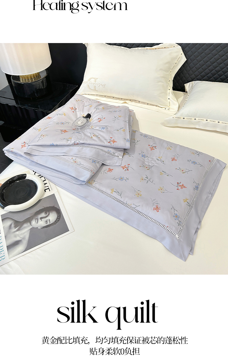 (总)薇玛仕 2026新款绣花80支兰精天丝可水洗蚕丝被100蚕丝填充夏凉被空调被,碧空蓝,春色绿,静谧紫,倩影粉,清雅灰,香槟咖