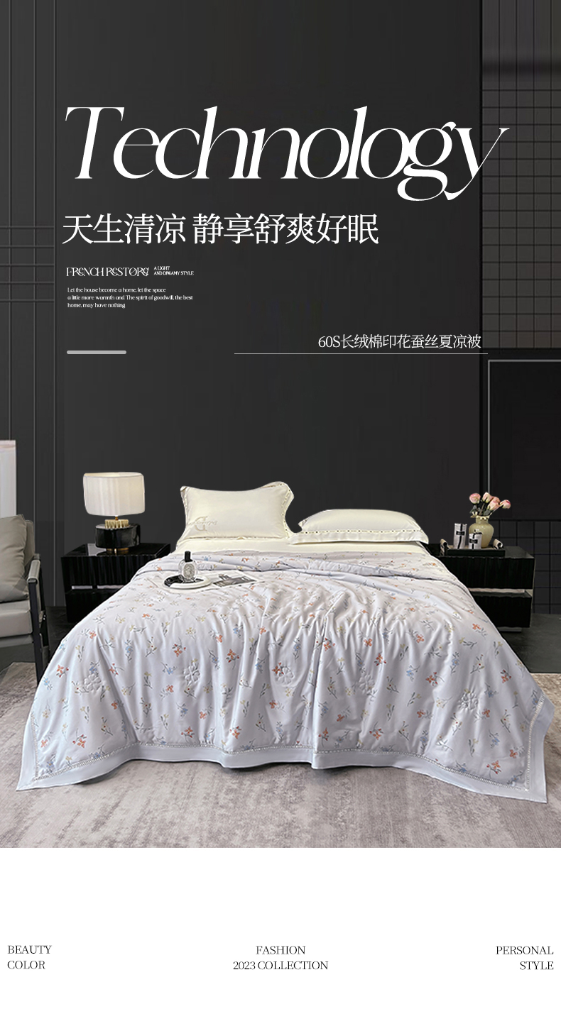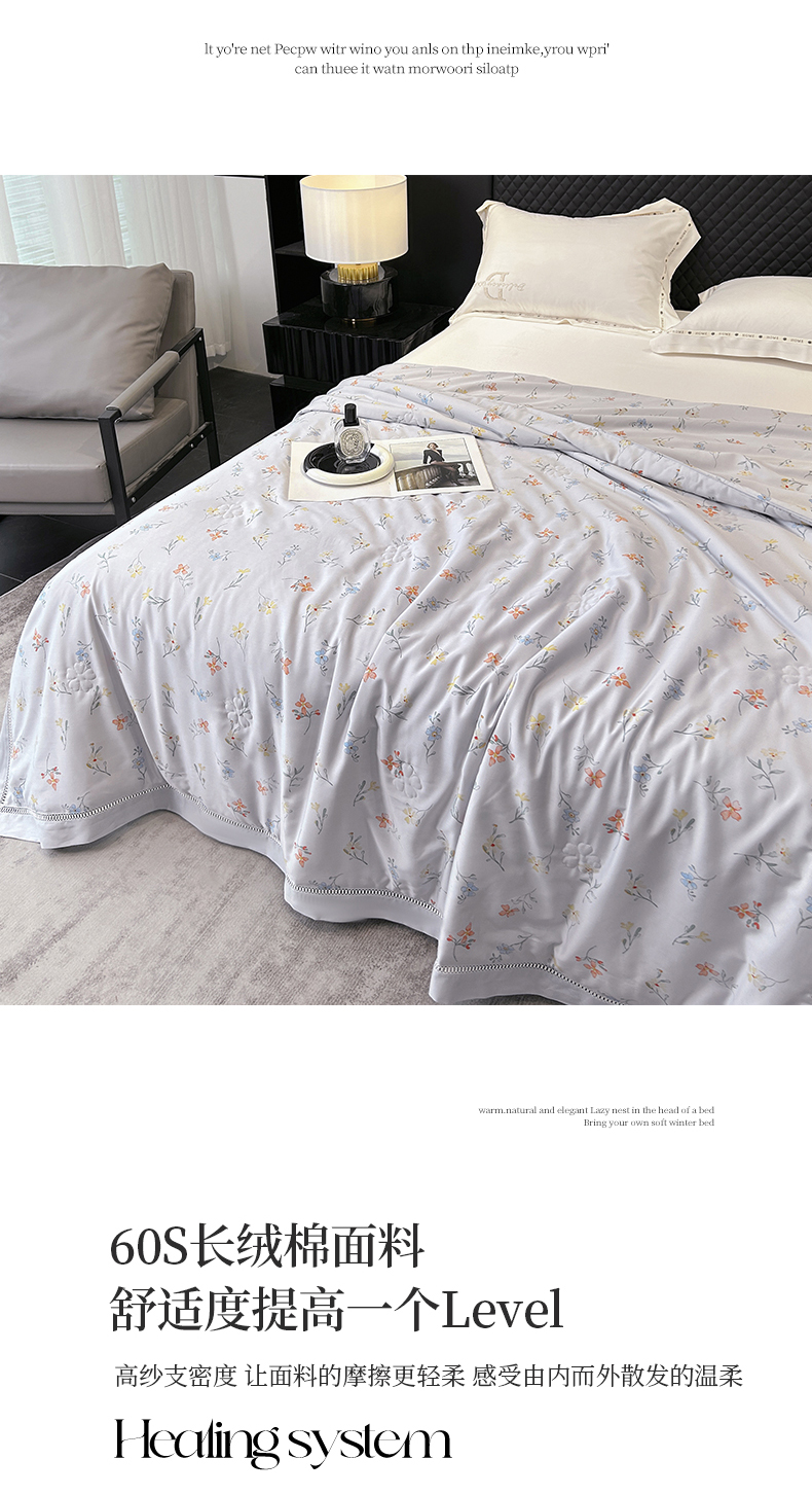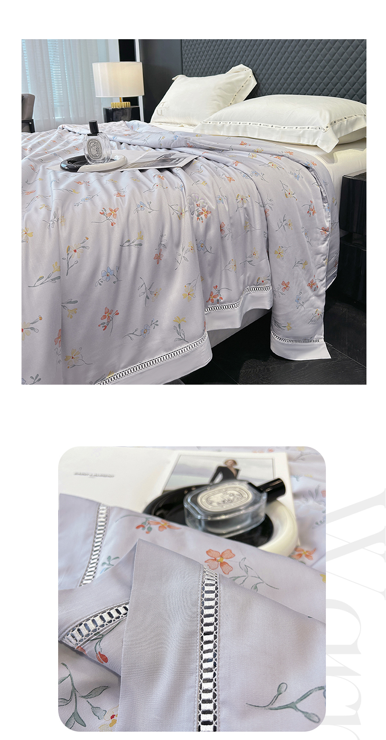 商品名称:薇玛仕 2026新款茶小纤60S长绒棉印花镂空款蚕丝夏凉被空调被 红袖添香-灰
