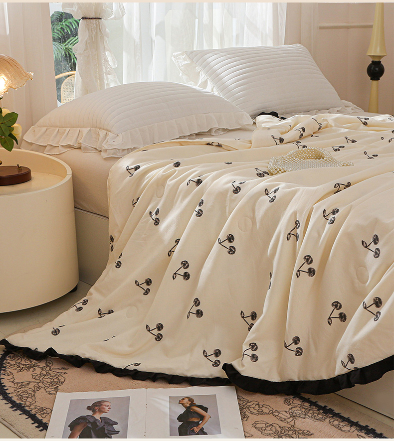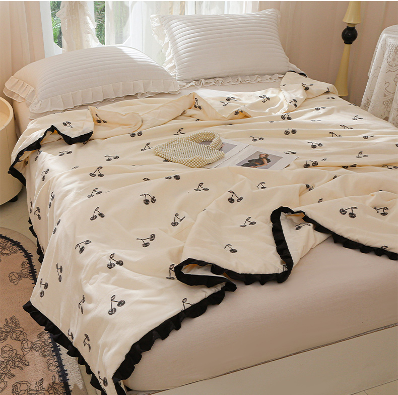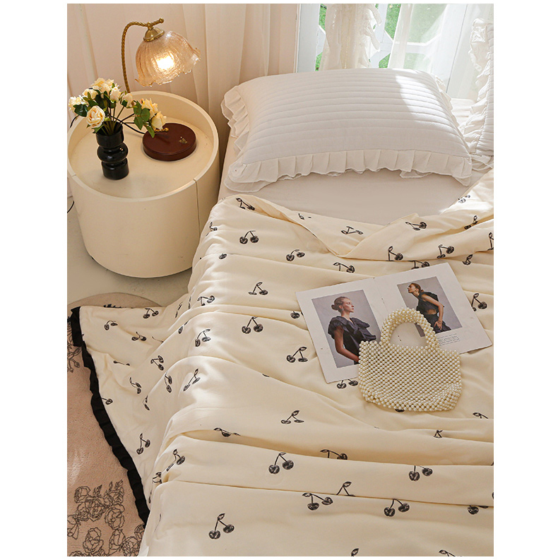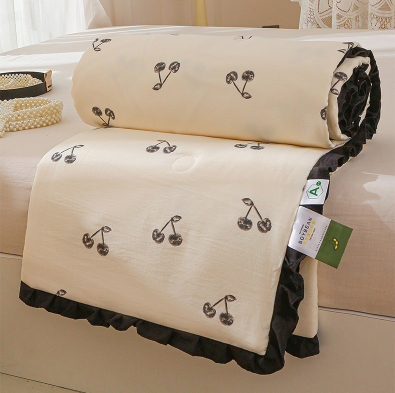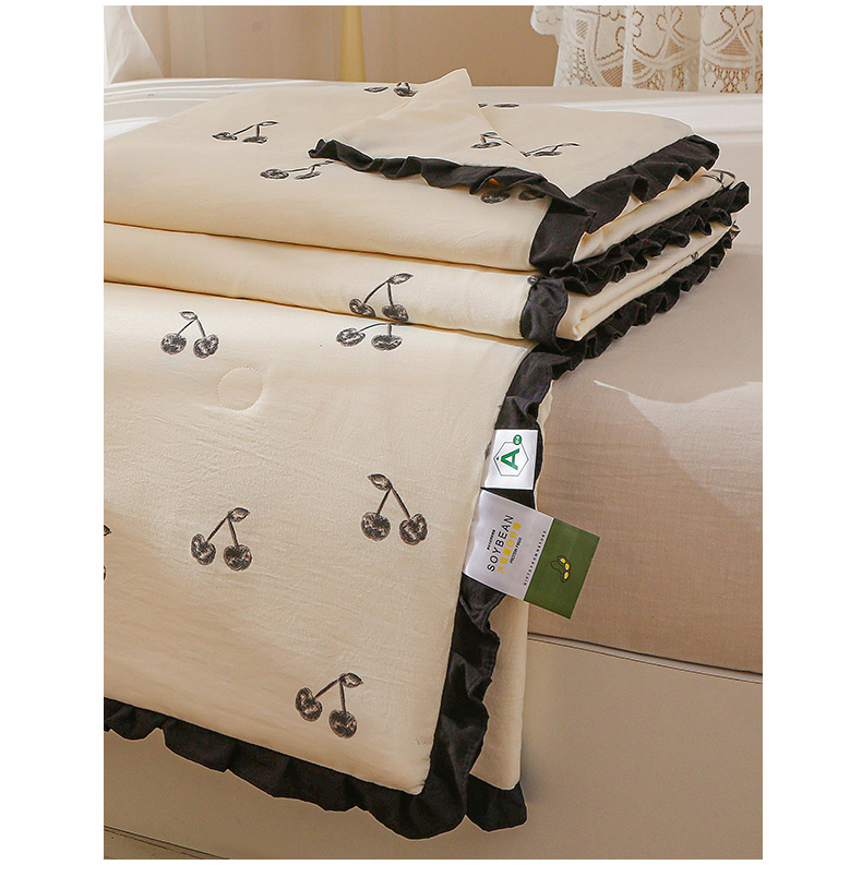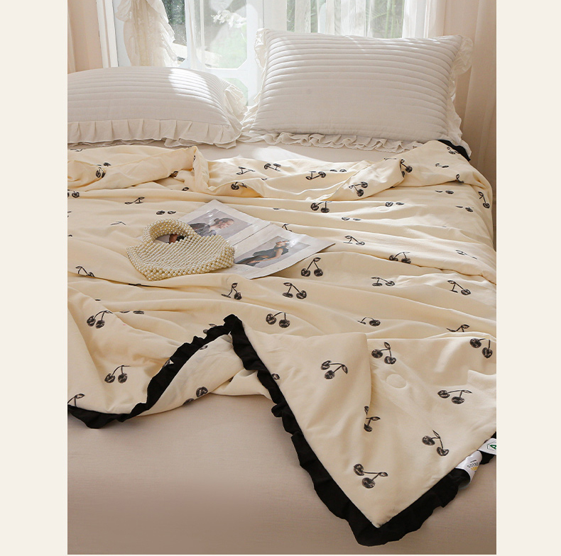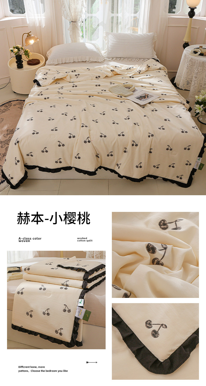 商品名称:薇玛仕 2026新款韩版宽边水洗棉大豆夏被赫本风亲肤柔软夏季薄被子 赫本-小樱桃