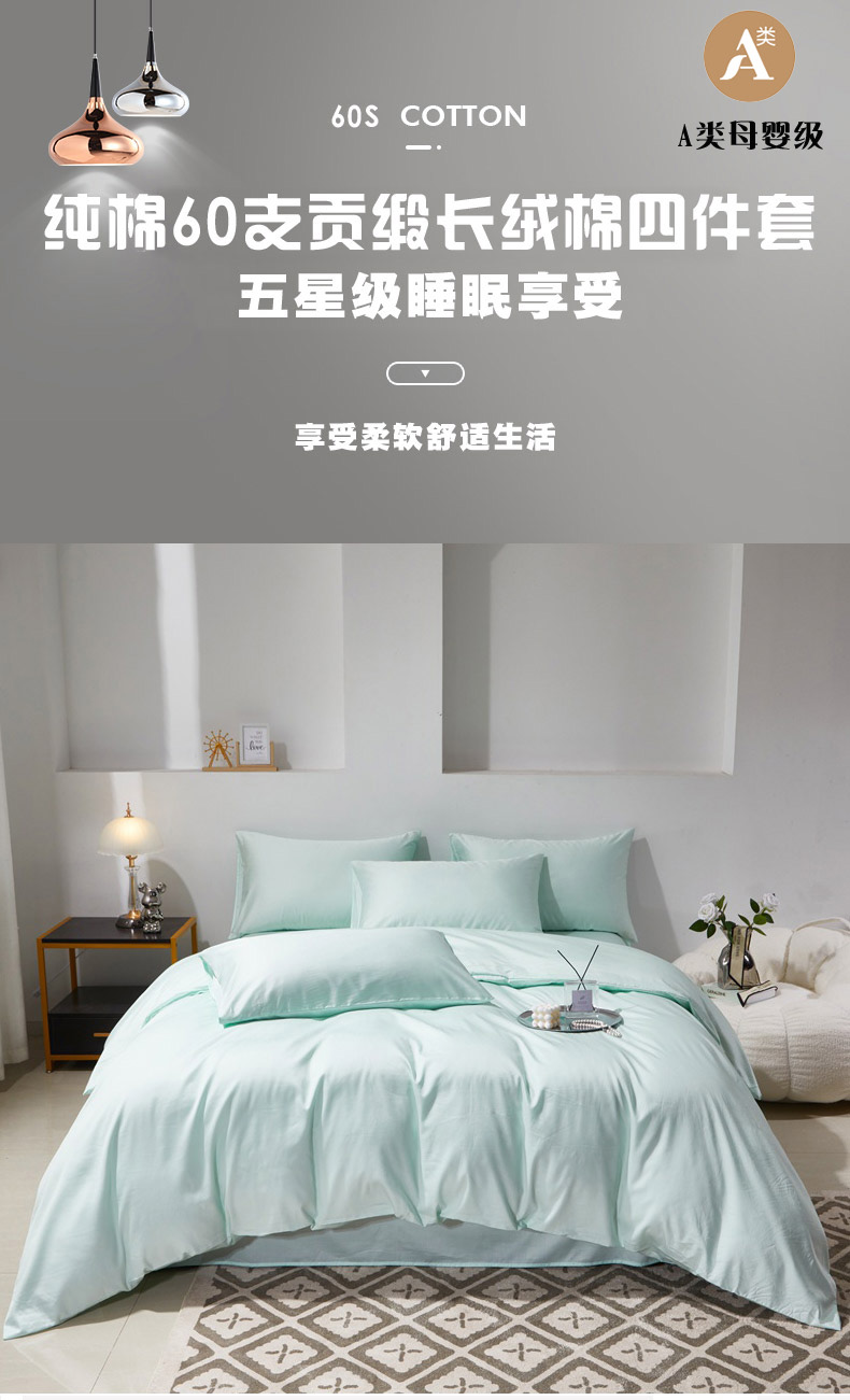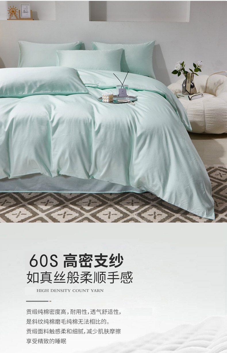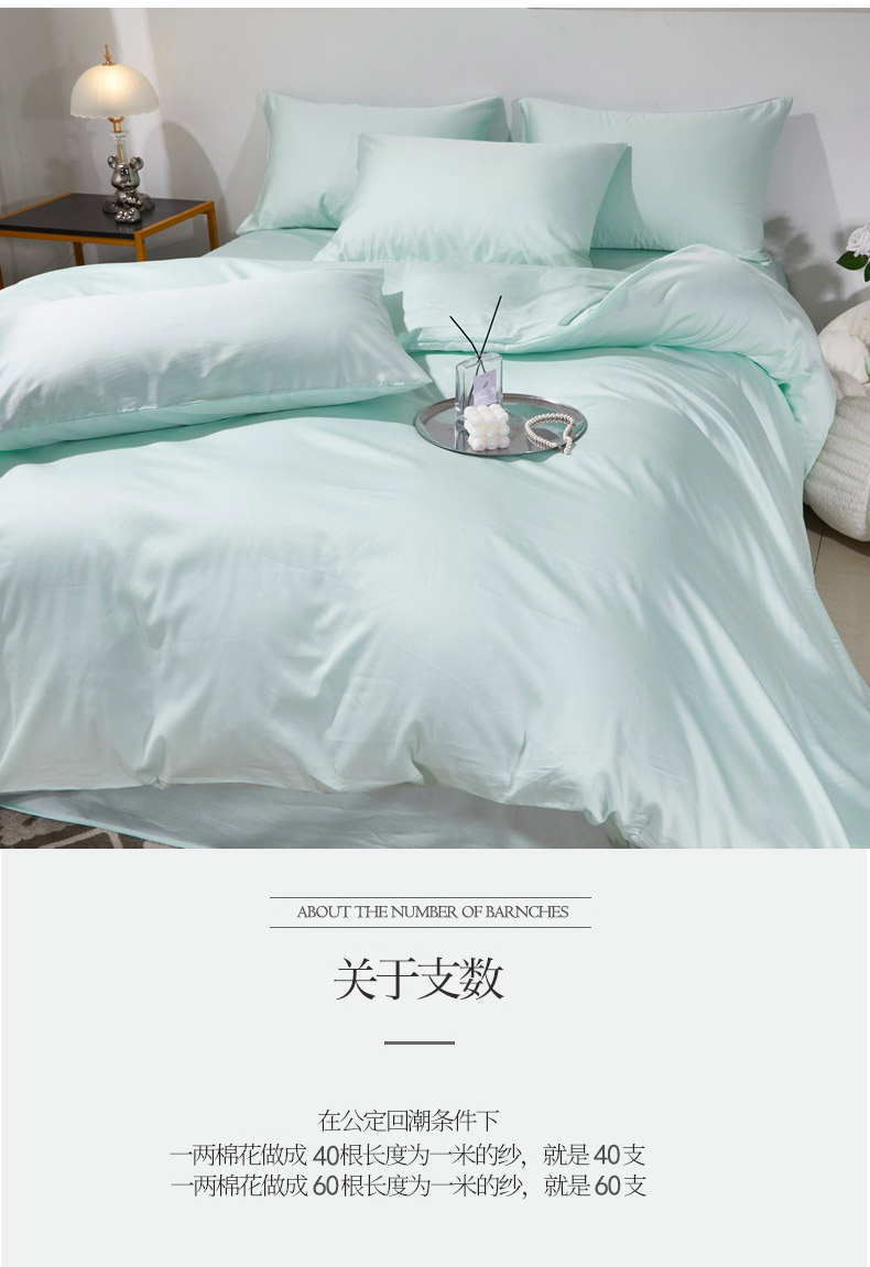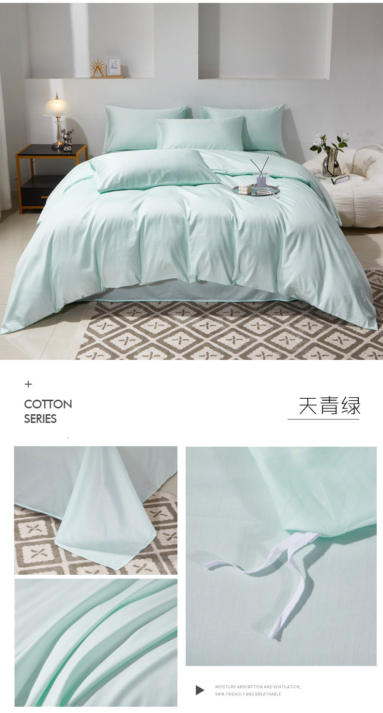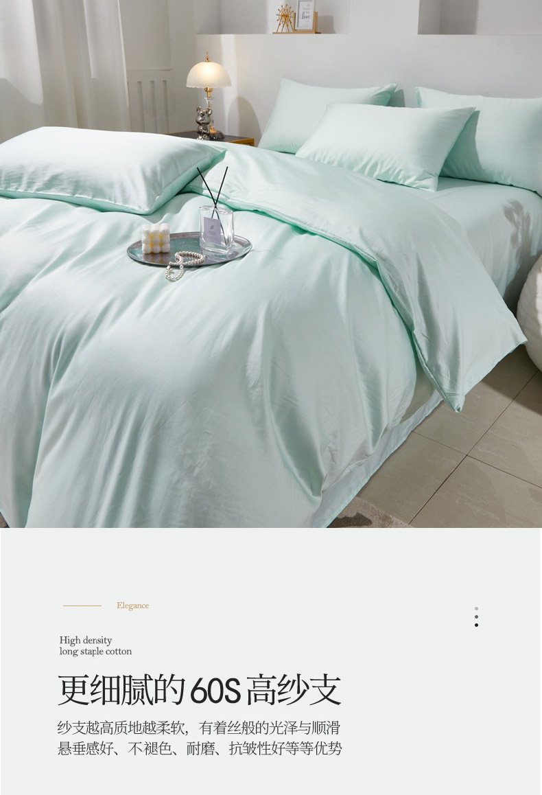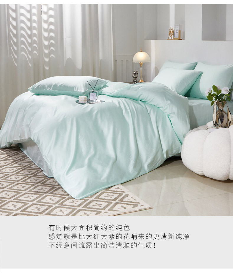 当前位置: 91家纺网 > 商品网购 > 床品套件 > 四件套 > 贡缎全棉四件套 > 晶缦家纺 2026新款全棉A类纯棉60支贡缎长绒棉纯色四件套 琳琅-天青绿