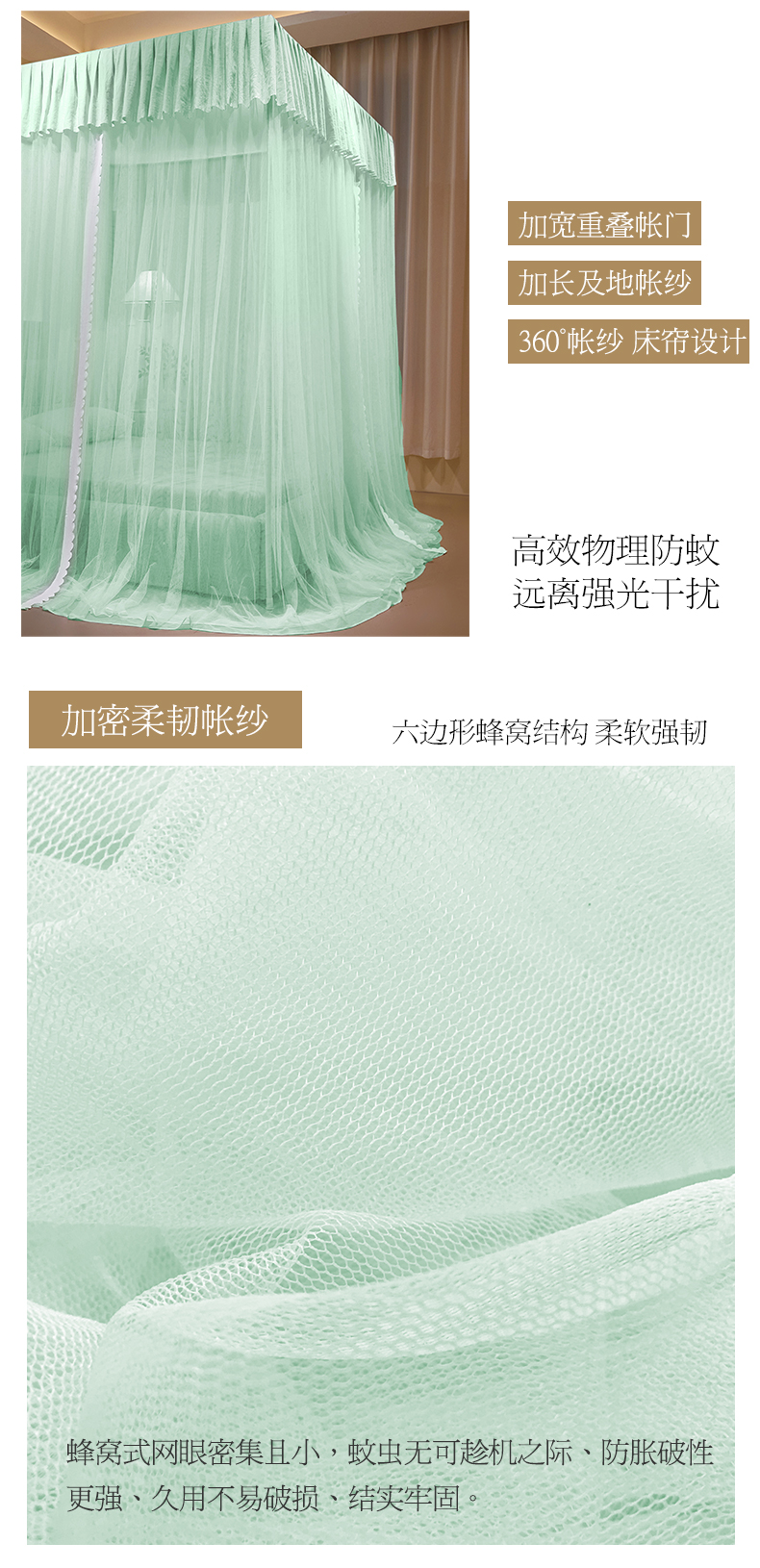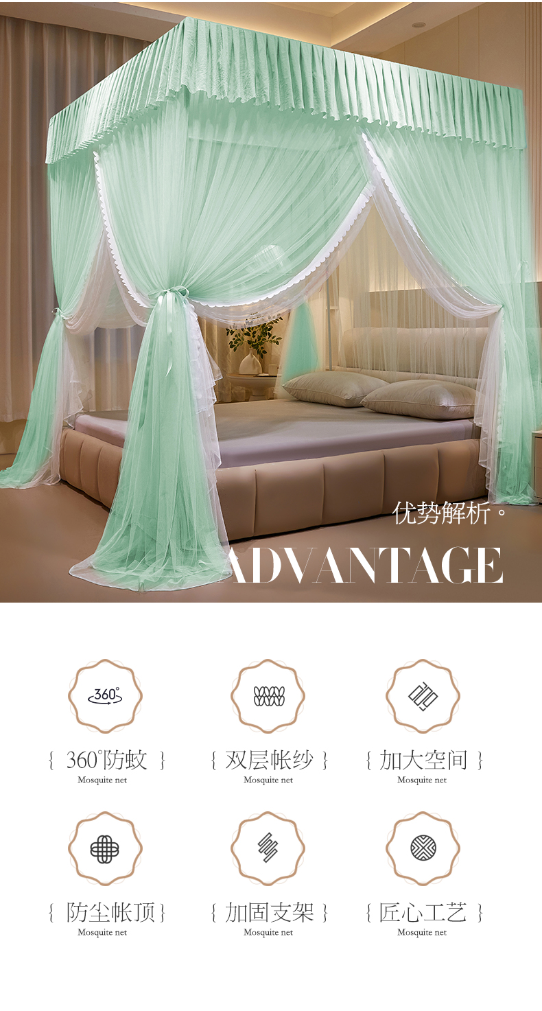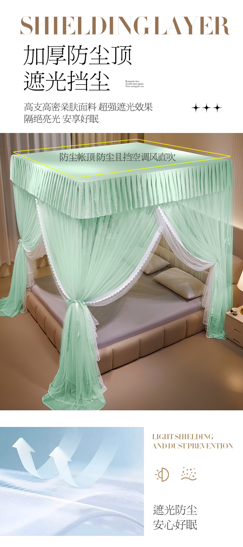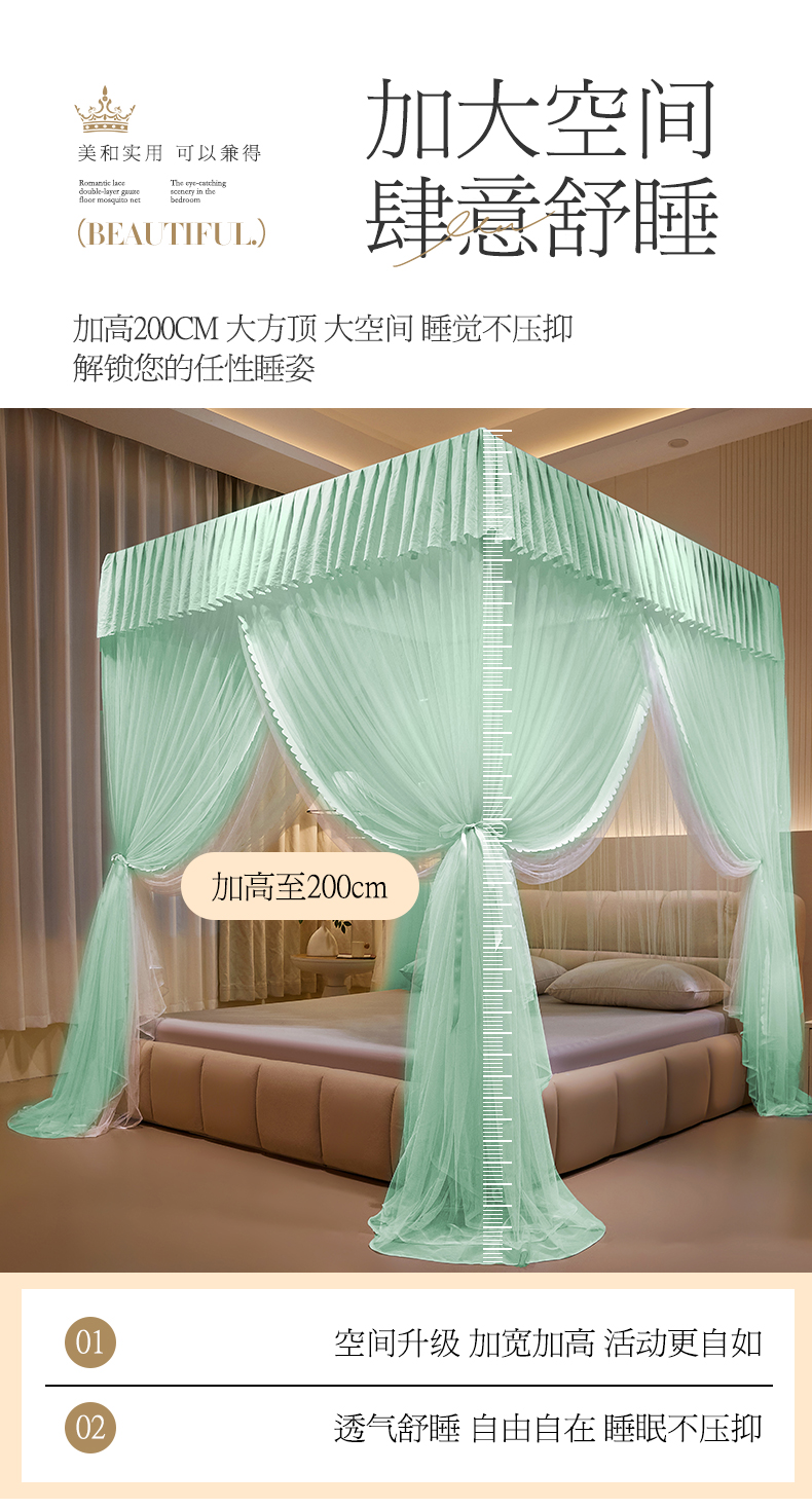当前位置: 91家纺网 > 商品网购 > 床上用品 > 蚊帐 > 宫廷蚊帐 > 优雅星家纺 2026新款浪漫花边双层纱落地蚊帐-轻舞盛夏 轻舞盛夏 绿白