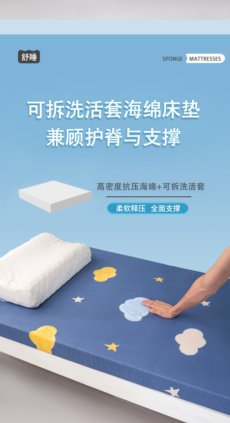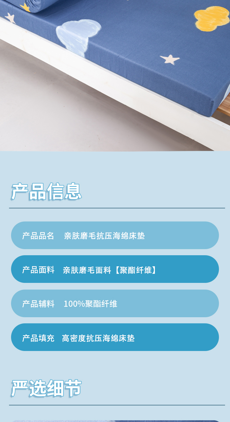商品名称:优雅星家纺 2026新款亲肤磨毛抗压海绵床垫学生床褥子床垫 海绵星云