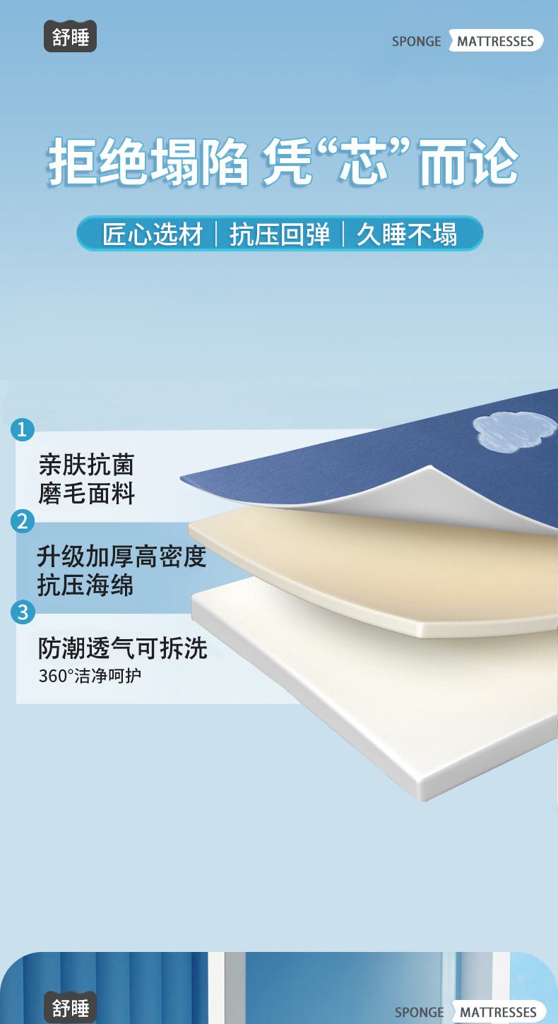 优雅星家纺 2026新款亲肤磨毛抗压海绵床垫学生床褥子床垫 海绵星云