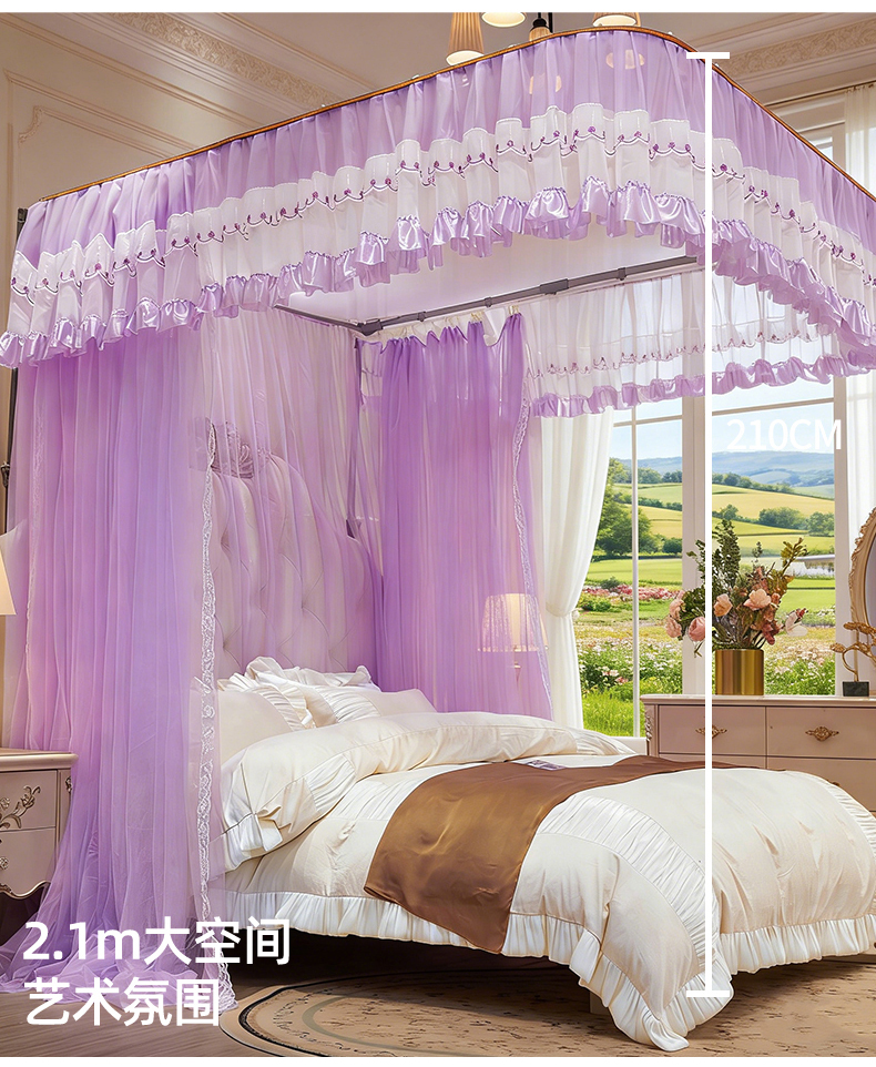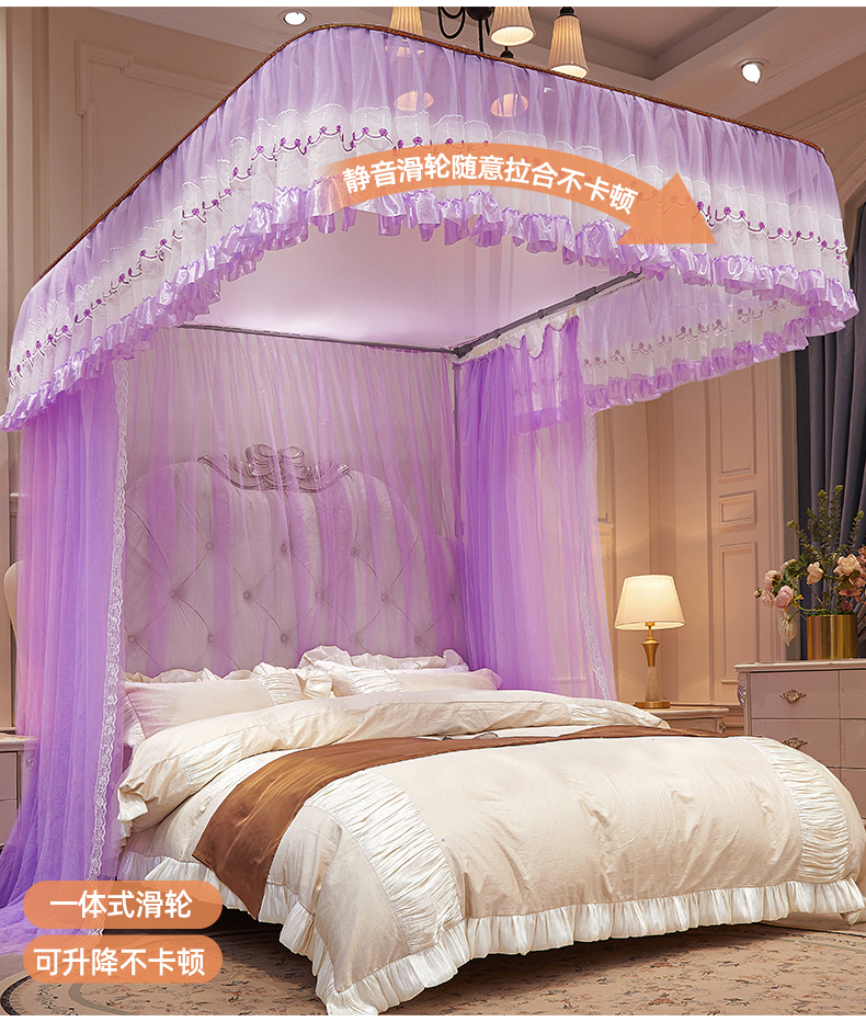 舞夜盛世 2026新款U型导轨落地宫廷蚊帐-花好月圆 花好月圆-紫色