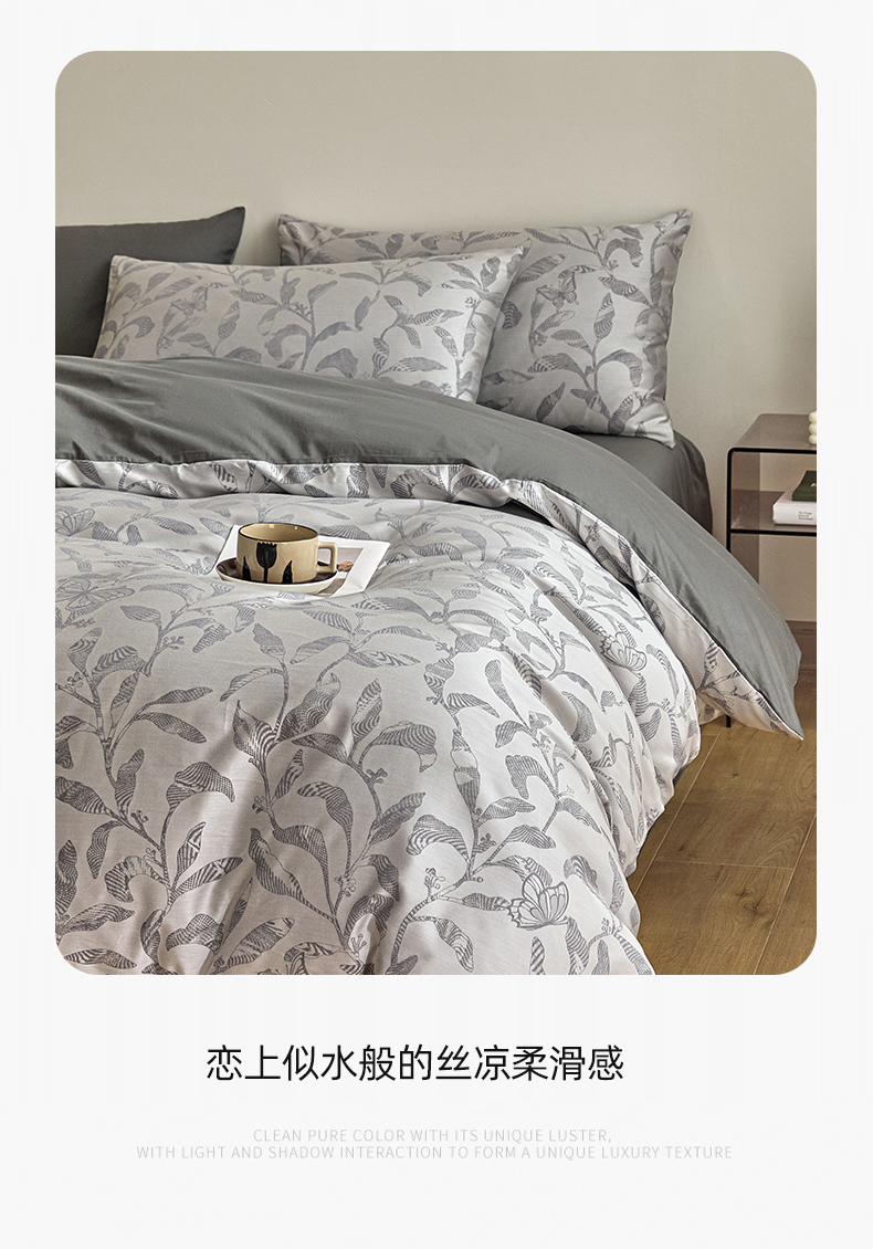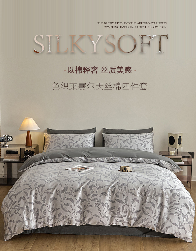 当前位置: 91家纺网 > 商品网购 > 床品套件 > 四件套 > 色织四件套 > 琪格格纺织 2026新款色织天丝棉提花四件套 初叶