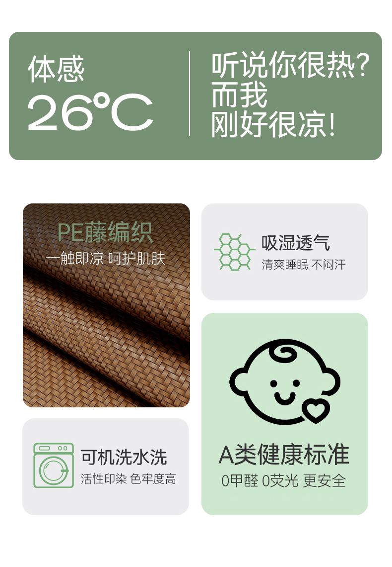 (总)绒艺席业 2026新款A类双面冰藤学生凉席-光板,光板咖,光板灰