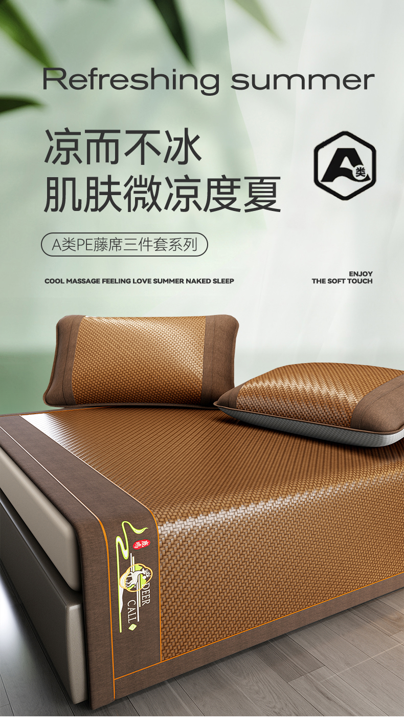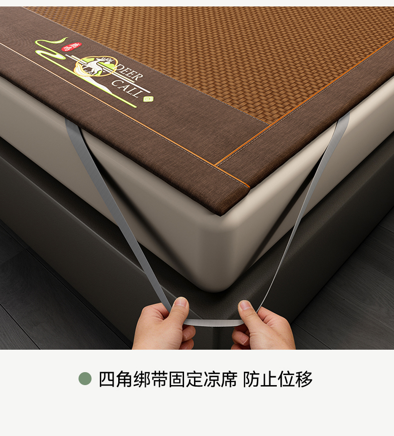 商品名称:绒艺席业 2026新款PE藤凉席-绣花款 鹿鸣-深棕