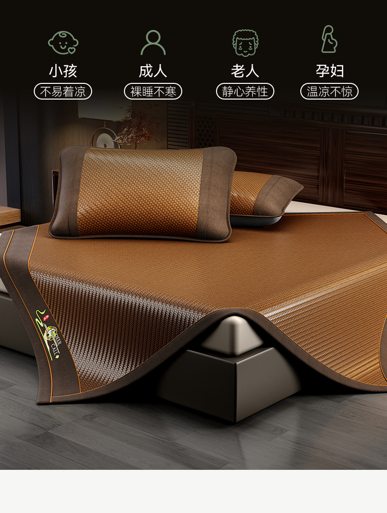 (总)绒艺席业 2026新款A类双面冰藤绣花款学生凉席-抑菌,抑菌咖,抑菌灰