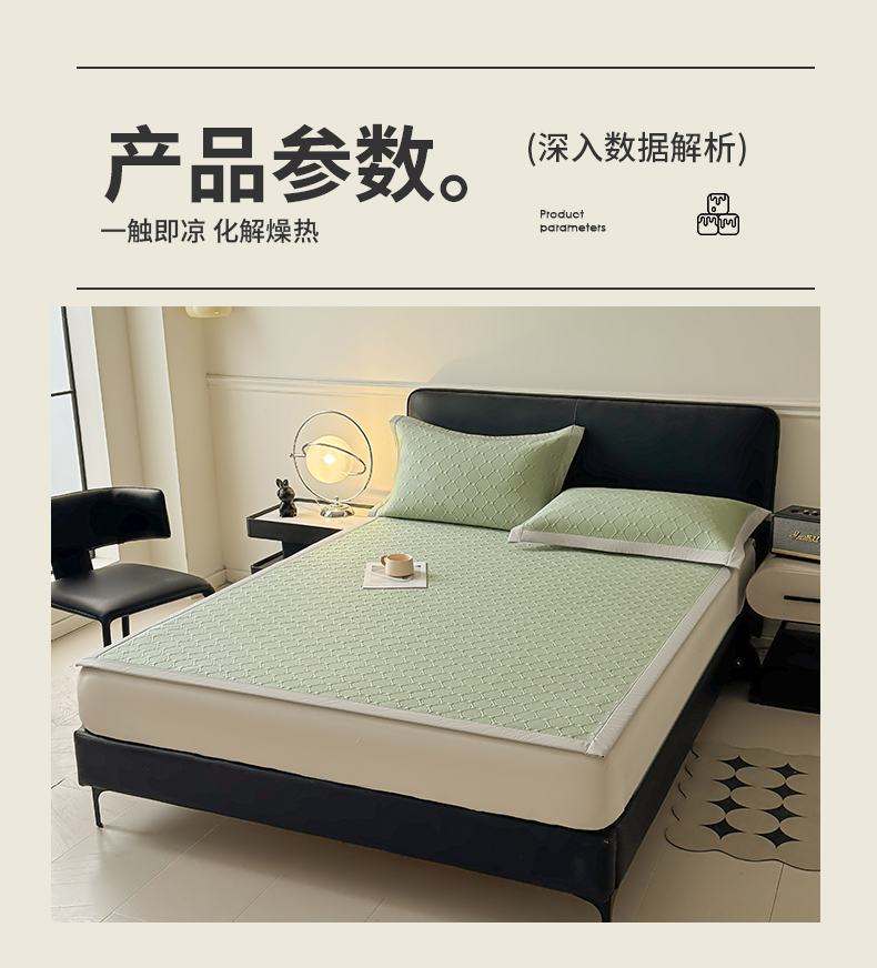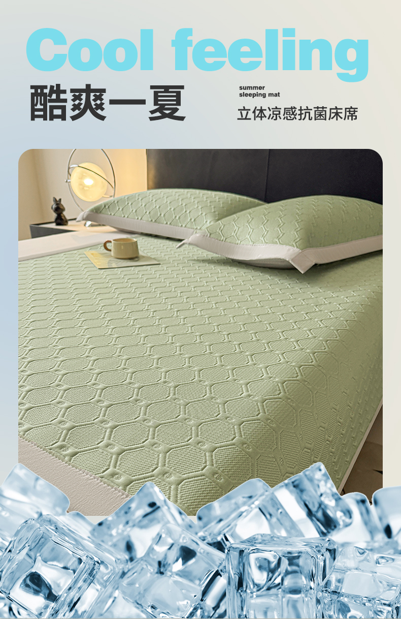 商品名称:居易简 2026新款刺绣实拍爆款凉豆豆凉席100%PE乙伦绣花可水洗床席席子-床席款 菱格 冰清绿