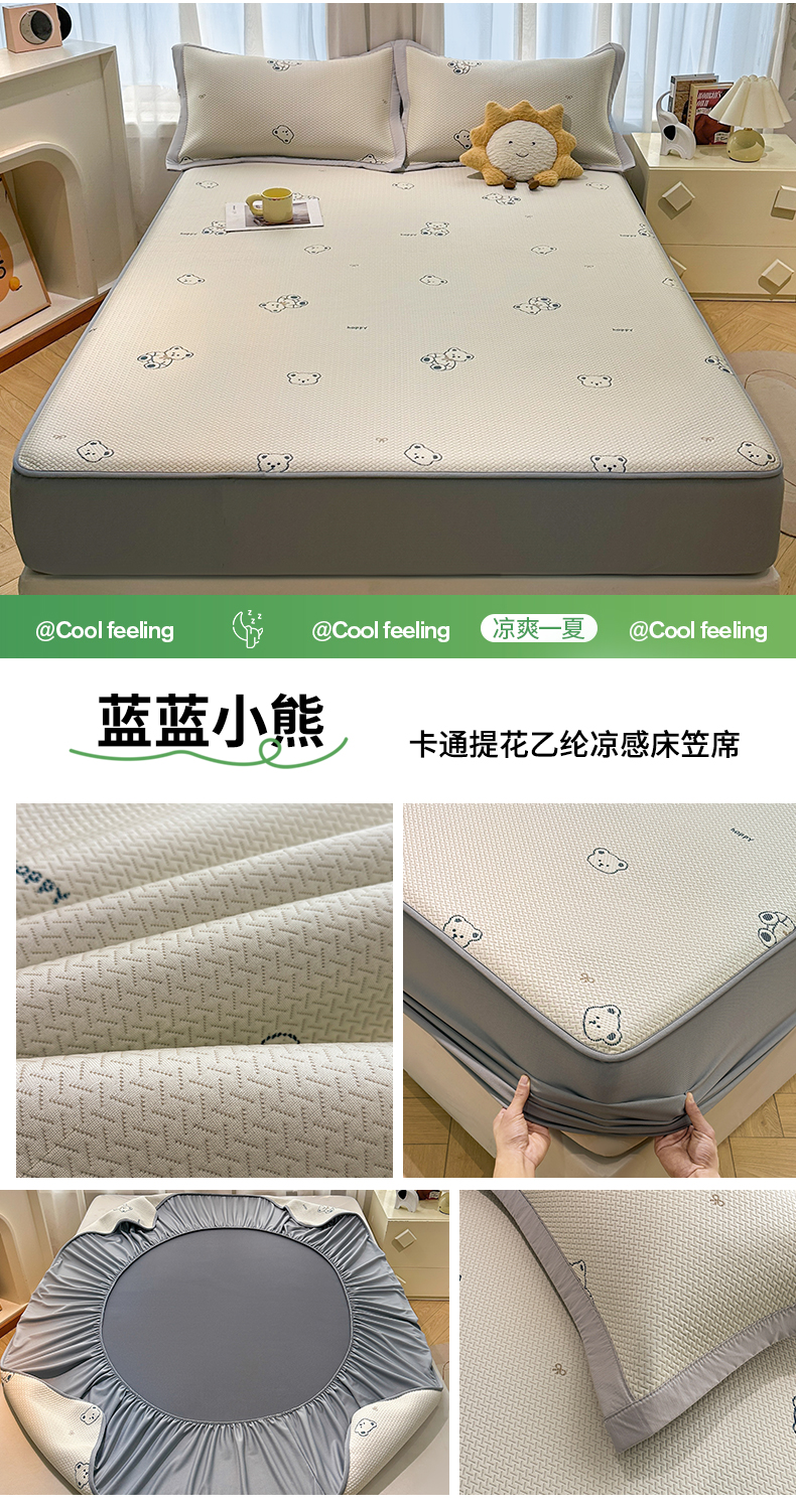 商品名称:(总)玉相逢 2026新款卡通实拍小红书爆款凉豆豆凉席100%PE 乙纶凉感可水洗床席席子-床笠款