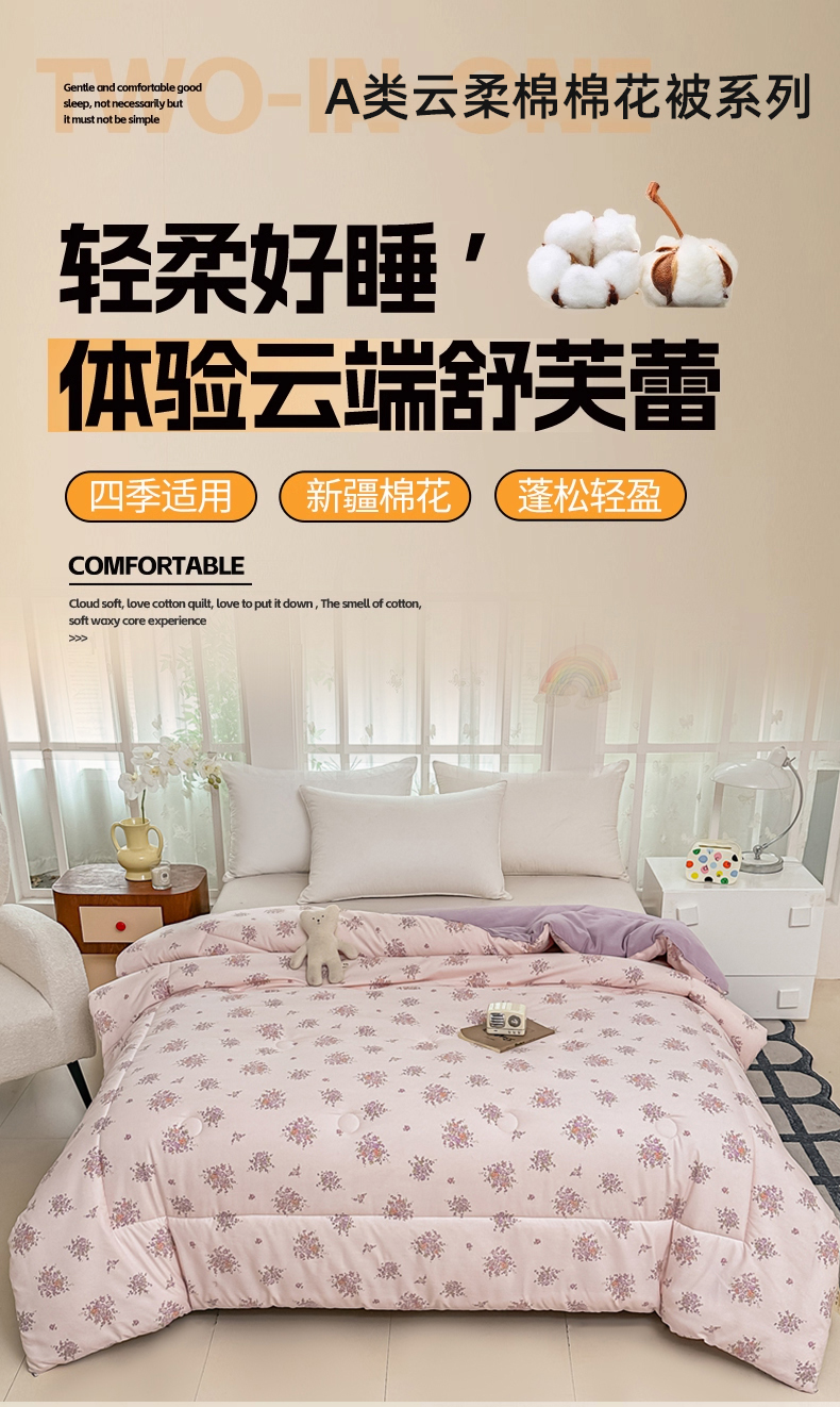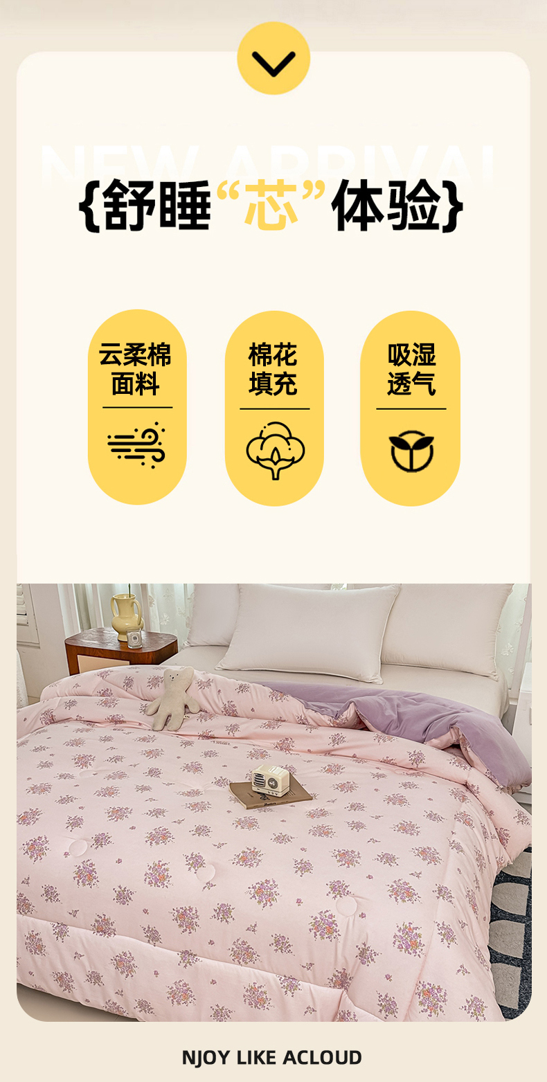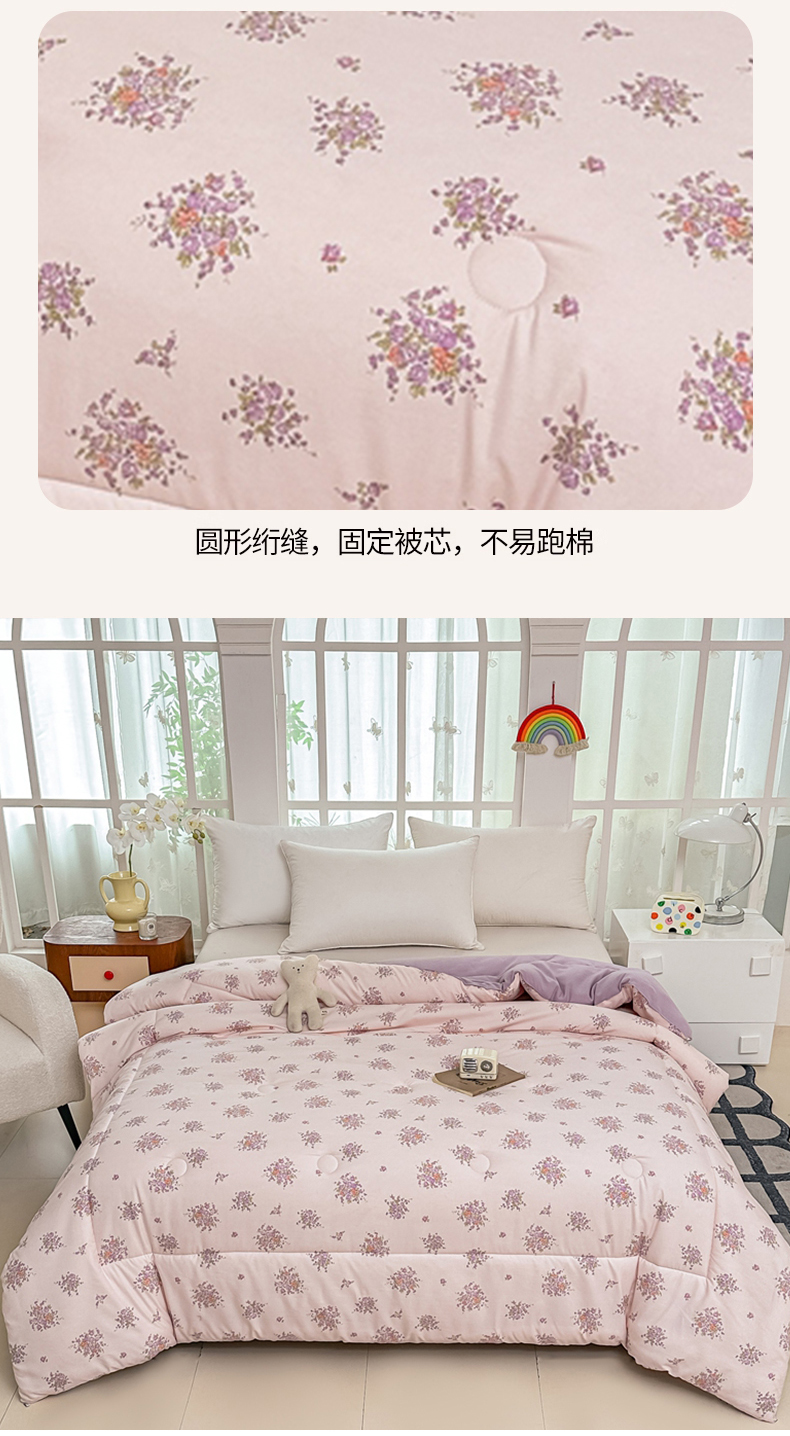 • 91家纺网 家纺一手货源 找家纺 好欣怡家纺 2026新款110克云柔棉被子50%新疆棉花夏被冬被被芯直播首选(含检测报告) 紫樱浅粉-冬被