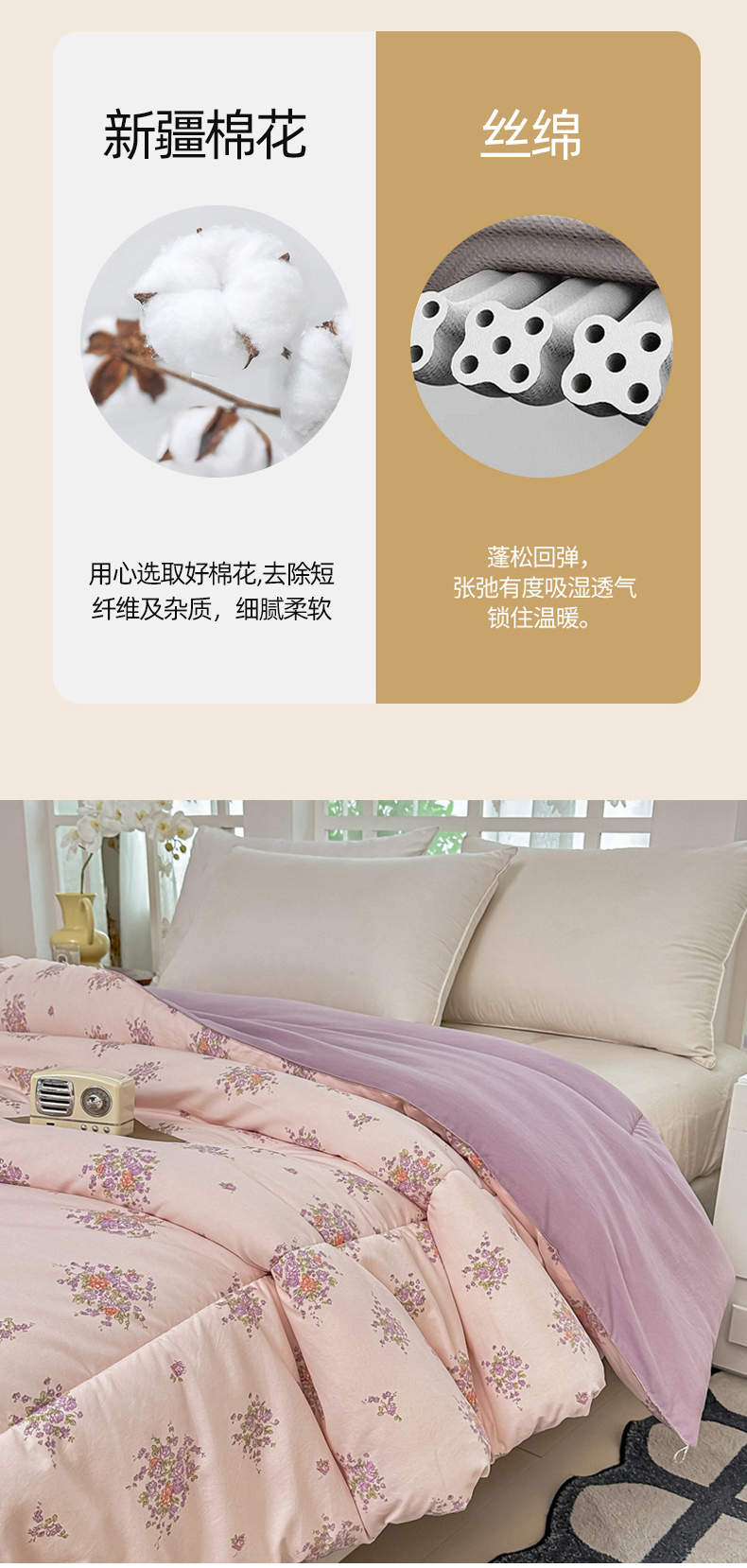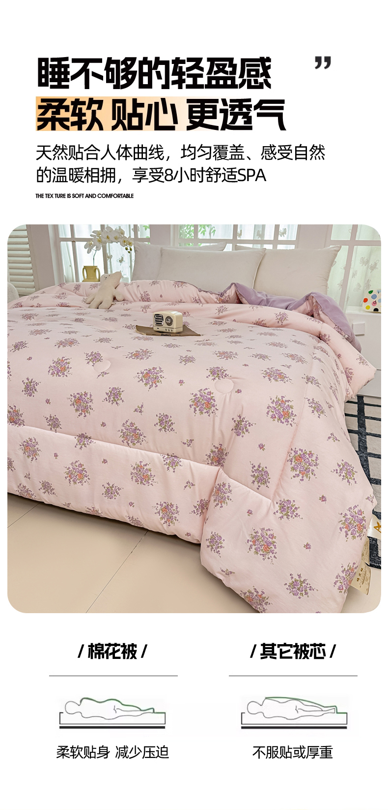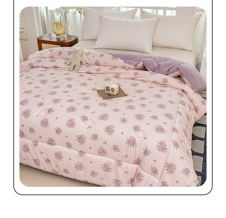 • 91家纺网 家纺一手货源 找家纺 好欣怡家纺 2026新款110克云柔棉被子50%新疆棉花夏被冬被被芯直播首选(含检测报告) 紫樱浅粉-冬被