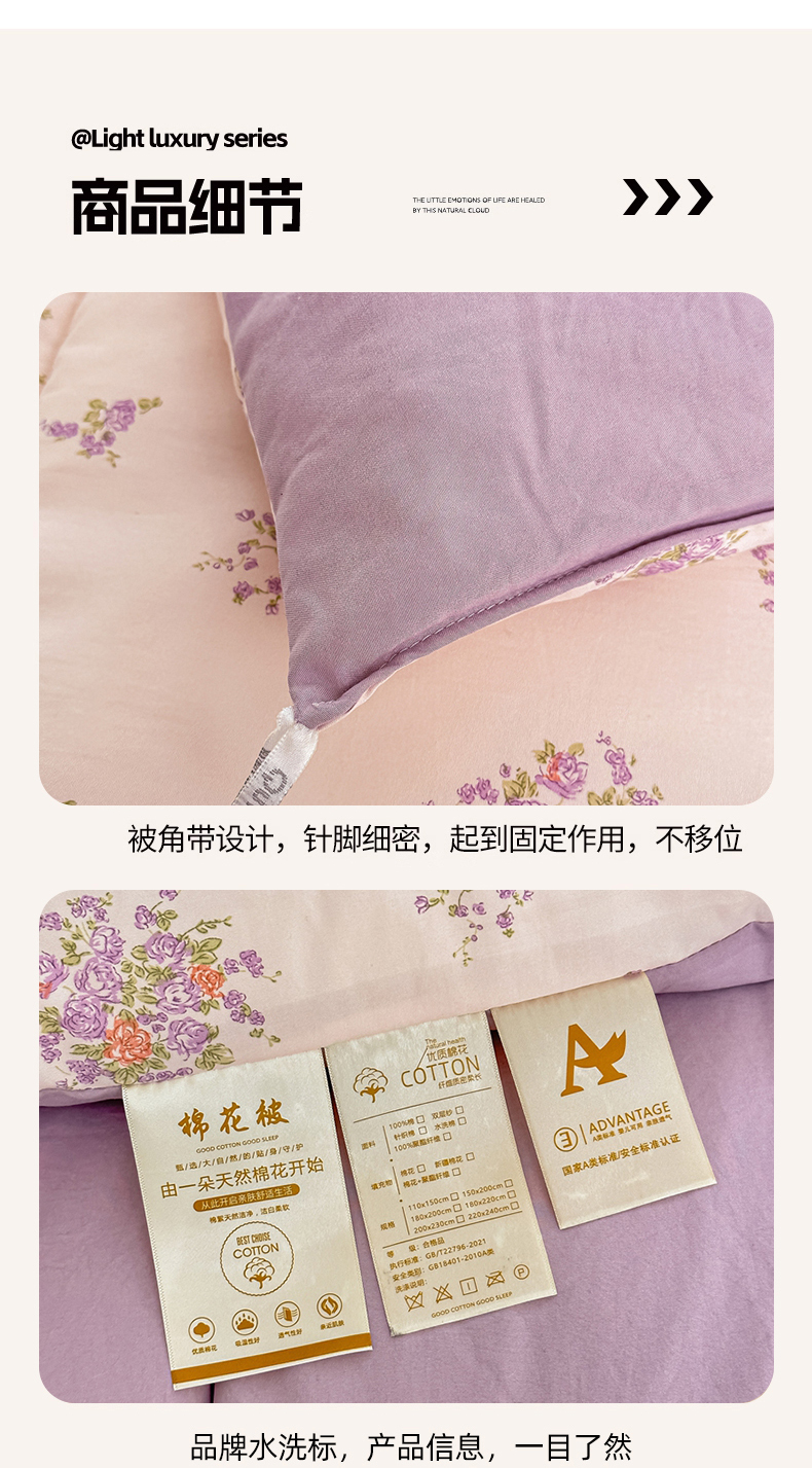 当前位置: 91家纺网 > 商品网购 > 被子 > 冬被 > 好欣怡家纺 2026新款110克云柔棉被子50%新疆棉花夏被冬被被芯直播首选(含检测报告) 紫樱浅粉-冬被