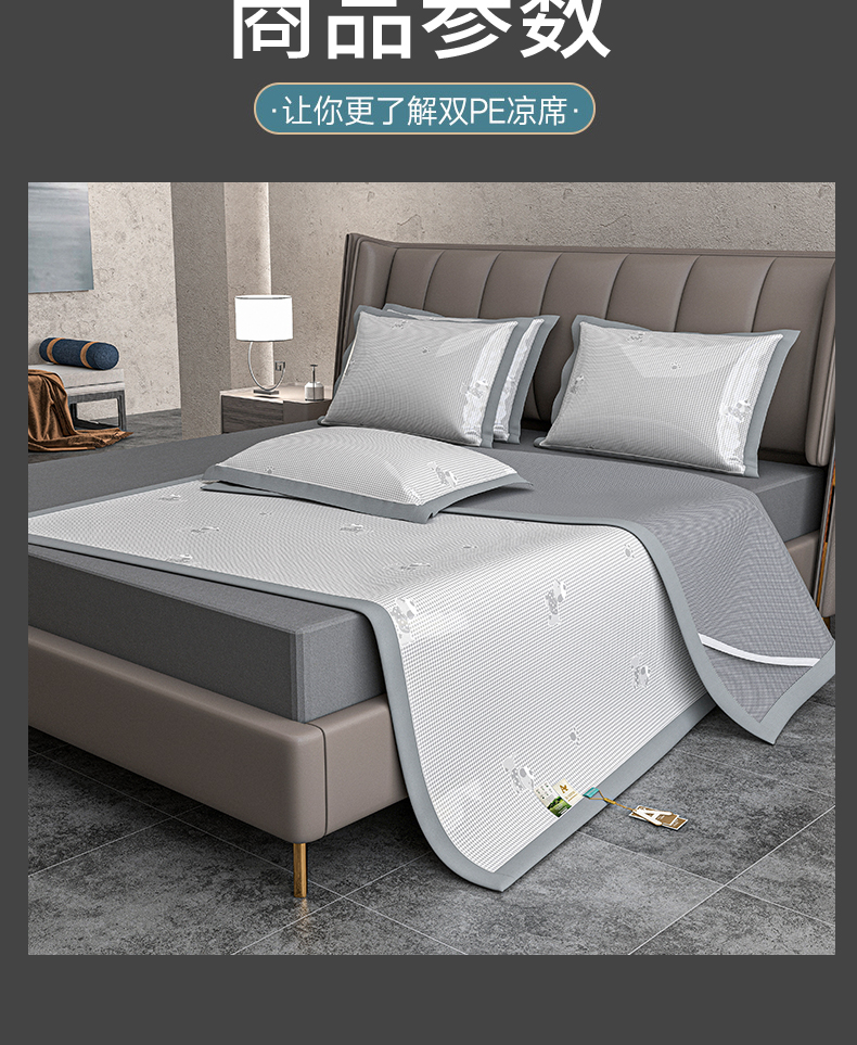 (总)小牛席业 2026春夏新款【实拍风格】PE凉感凉席席子-轻奢赫本(床笠款),轻奢赫本-灰色,轻奢赫本-粉色,轻奢赫本-蓝色,轻奢赫本-香槟