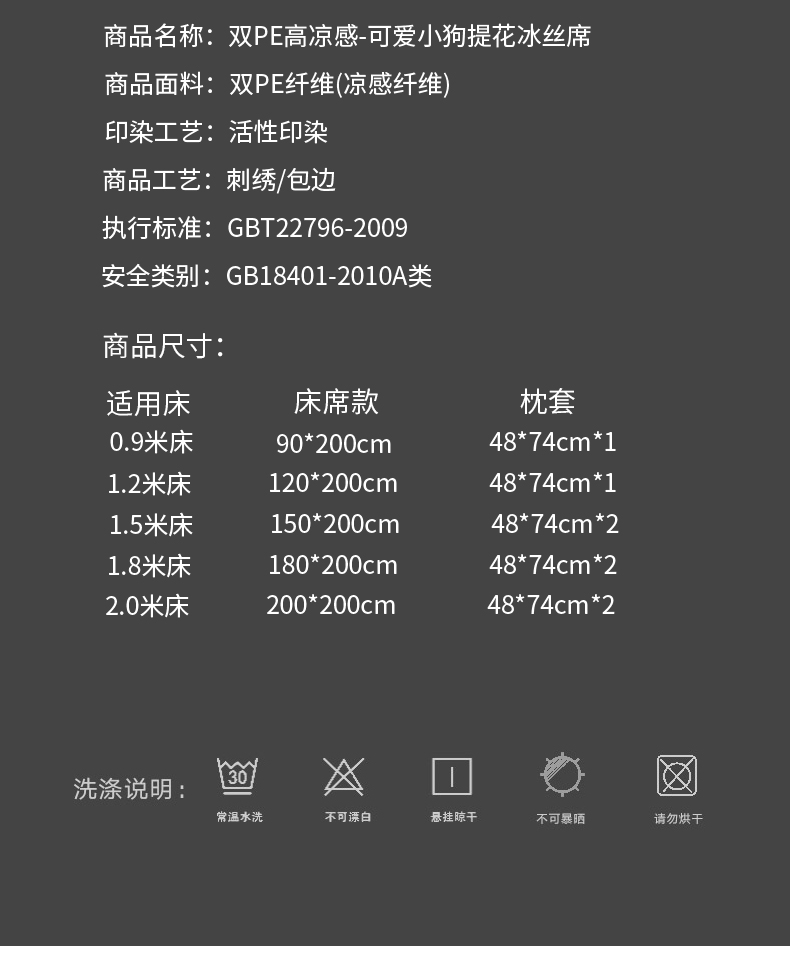 200x220cm平铺款单凉席+枕套一对