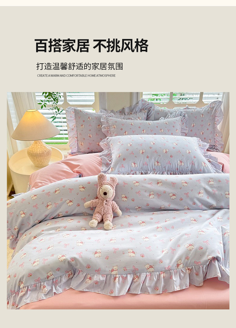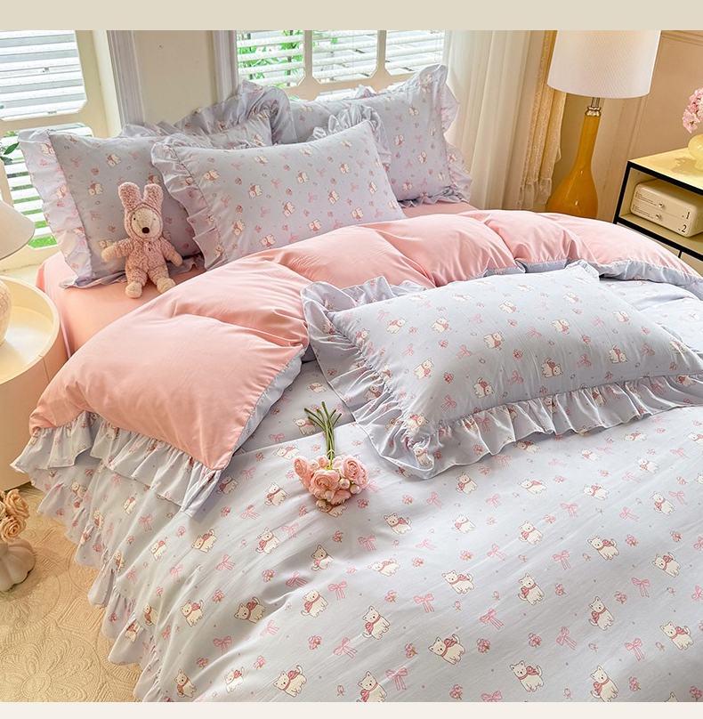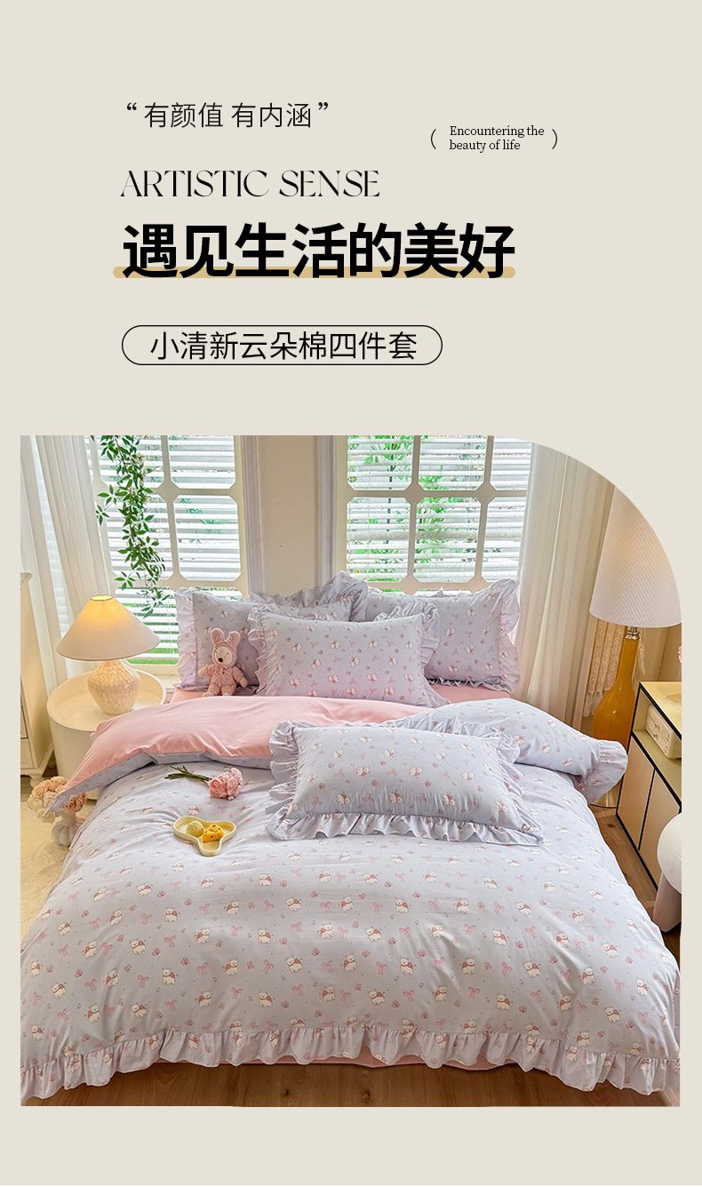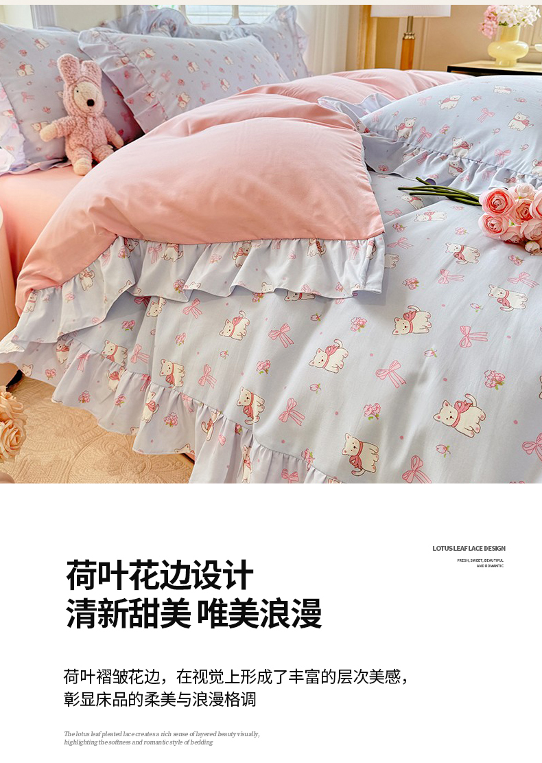 当前位置: 91家纺网 > 商品网购 > 床品套件 > 四件套 > 水洗棉四件套 > 经年 2026新款韩版花边水洗云朵棉四件套 蝴蝶结小狗