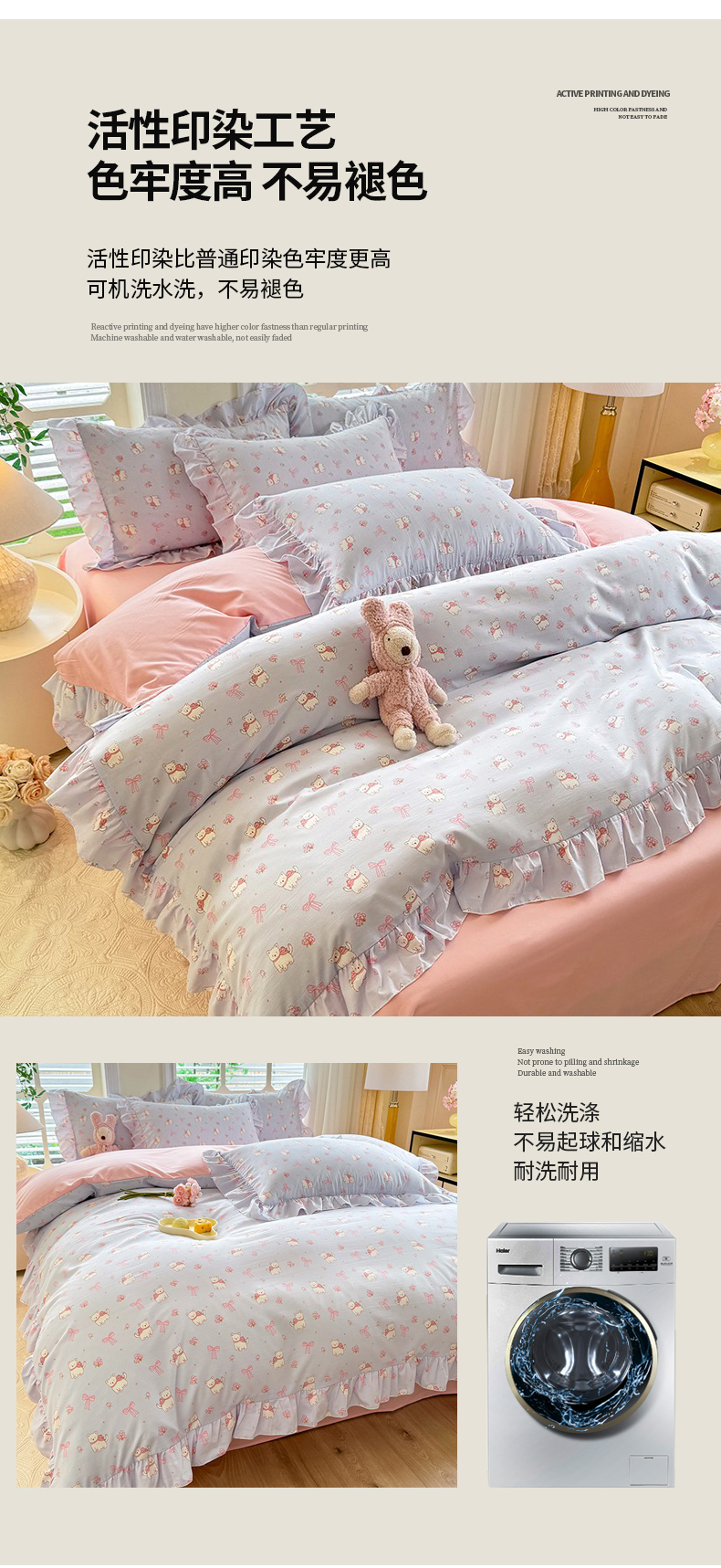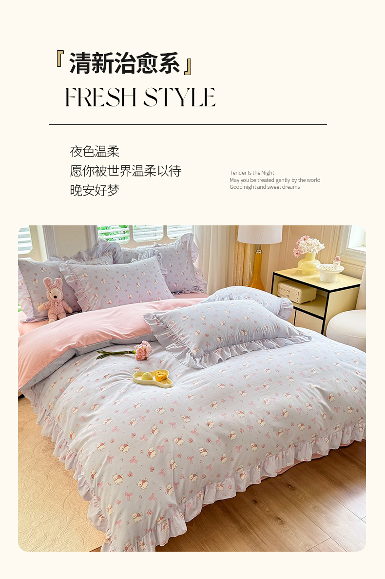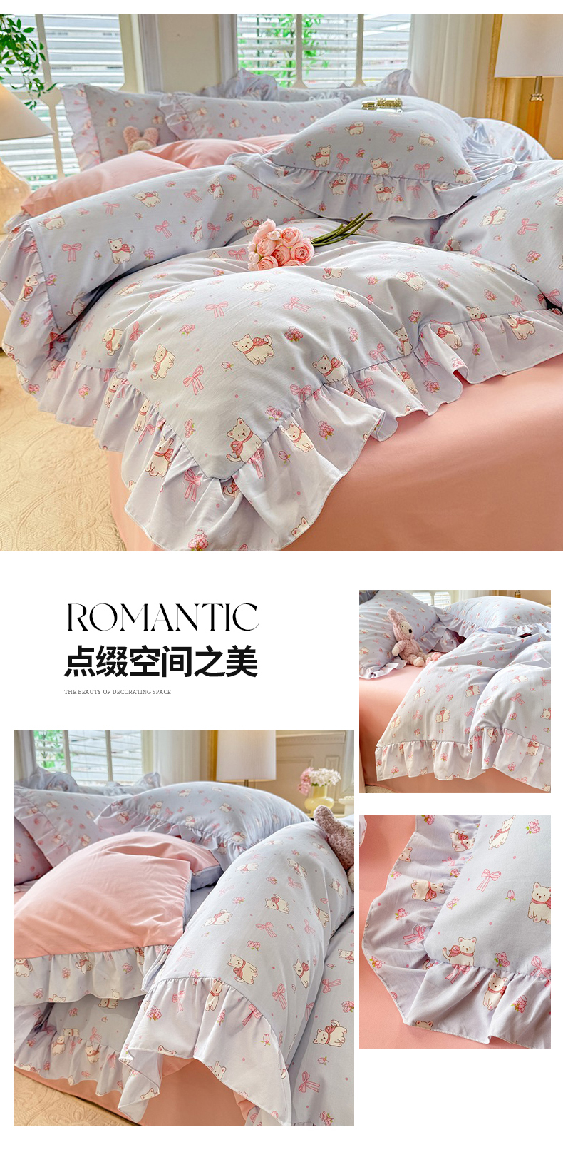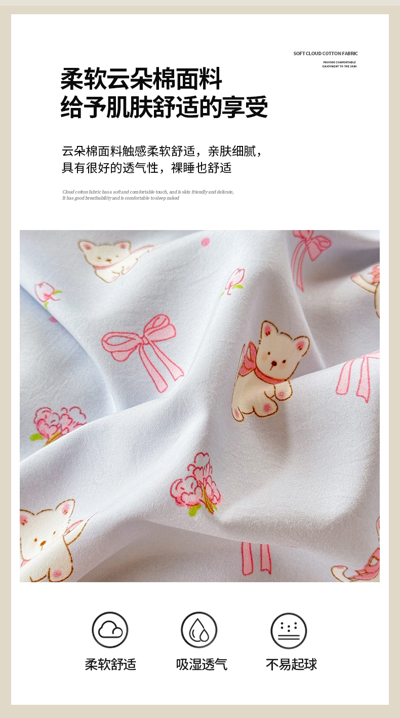 当前位置: 91家纺网 > 商品网购 > 床品套件 > 四件套 > 水洗棉四件套 > 经年 2026新款韩版花边水洗云朵棉四件套 蝴蝶结小狗