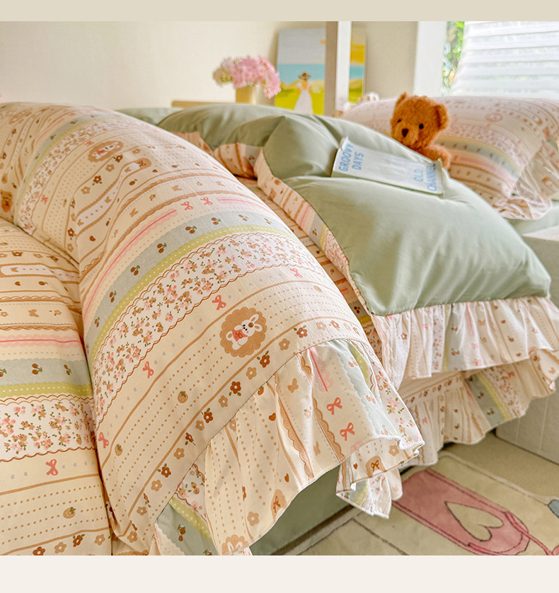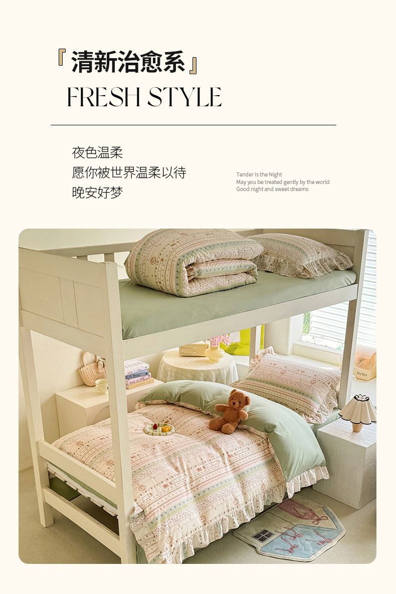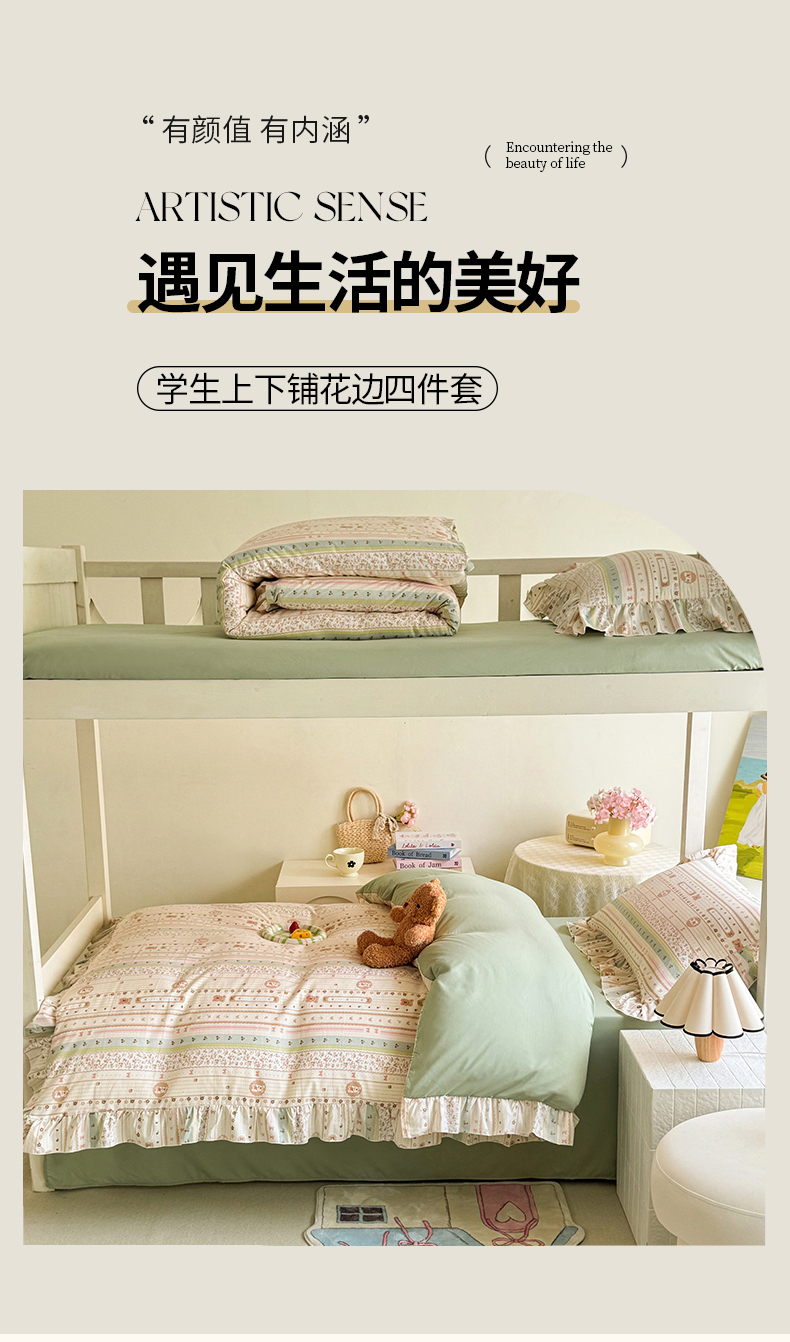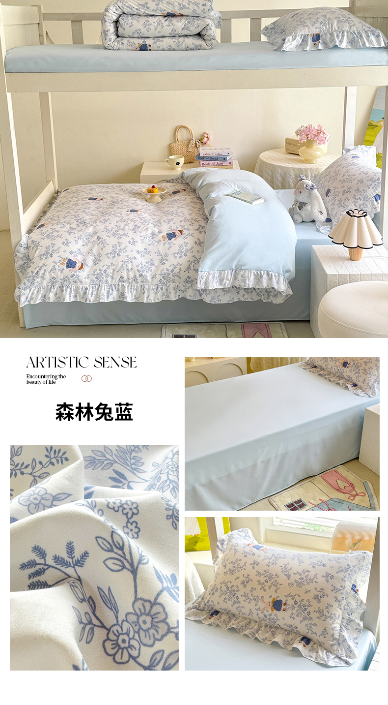 当前位置: 91家纺网 > 商品网购 > 床品套件 > 四件套 > 水洗棉四件套 > 经年 2026新款学生季上下铺韩版花边水洗云朵棉学生宿舍三件套四件套 泡芙小兔