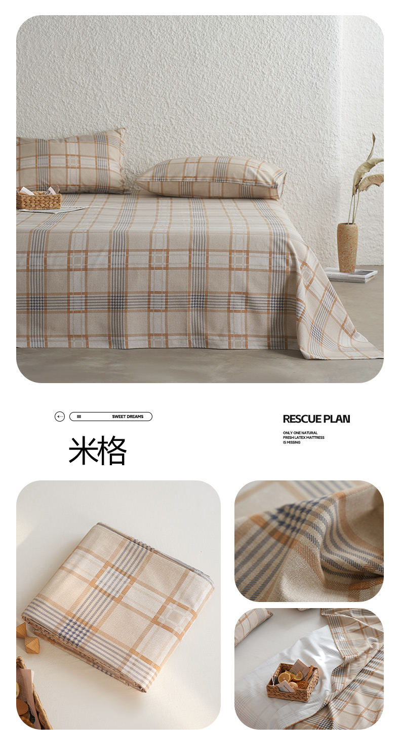 (总)小懒猪 2026新品全棉纯棉老粗布单品床单床单单件凉席席子,莱卡灰,莱卡米,乐天派,铃芽,绿漾,梦境,米格,魔方,千鸟格灰,千鸟格米,浅蓝格,笙歌,微莫,细条蓝格,小灰格,月白白,月白粉,月白绿,组合图仅供展示不可下单