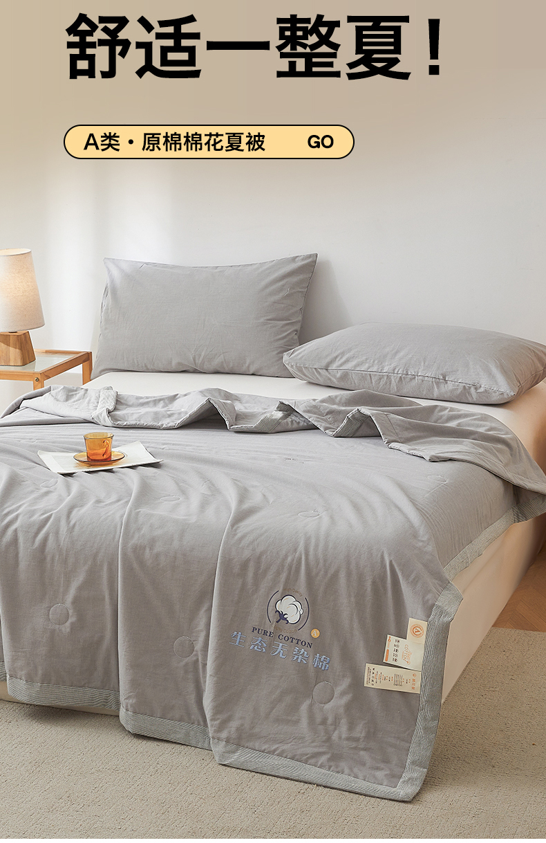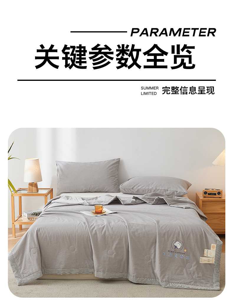 商品名称:招财星家纺 2026新款棉花夏被无印风纯色新疆棉夏凉被空调被棉花夏被棉花被子百分百新疆棉(带质检报告买家秀) 沐槿-浅灰