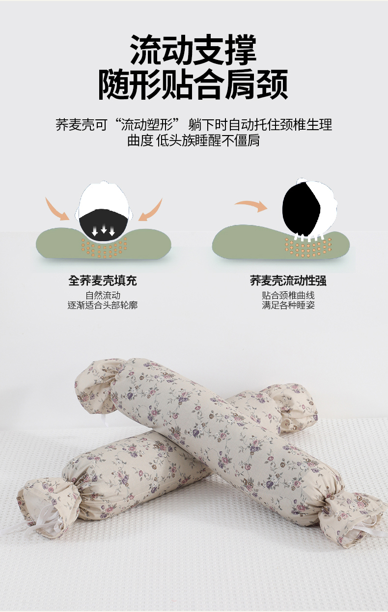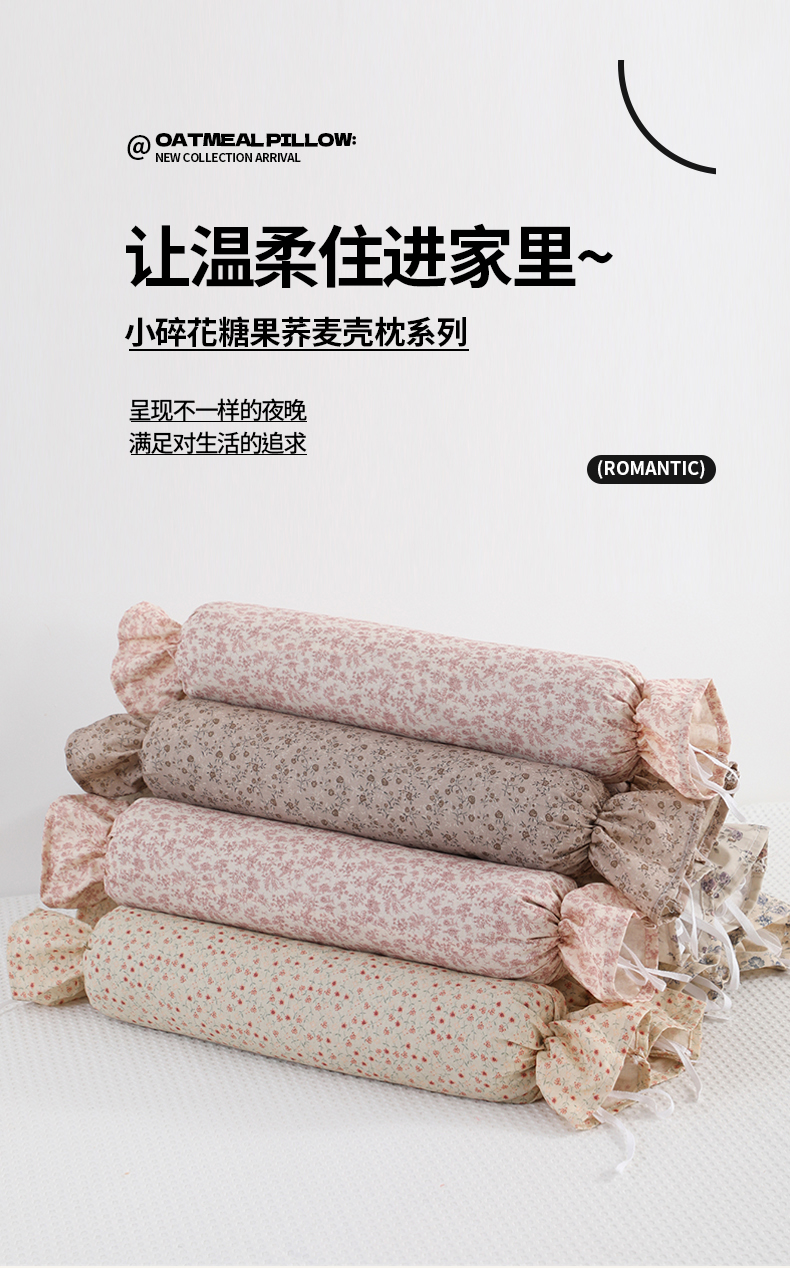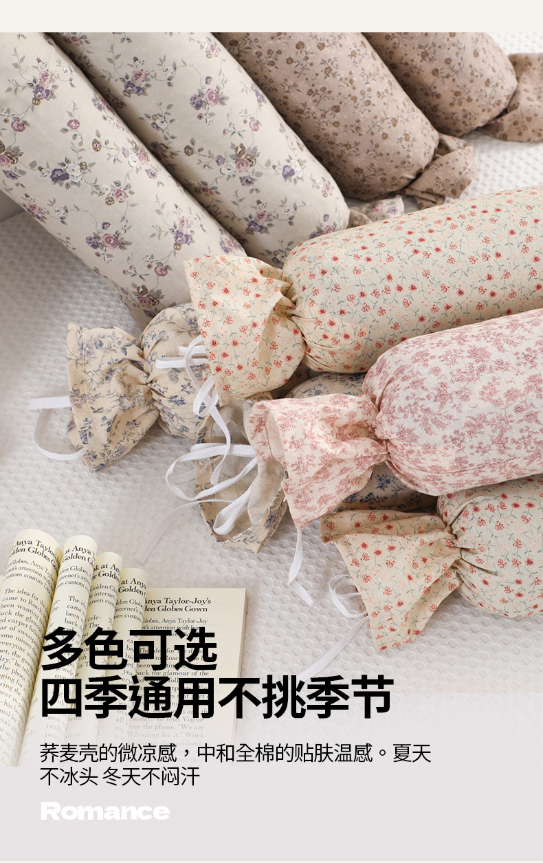 商品名称:(总)仁宇枕业 2026新款新品全棉小碎花糖果枕头圆形颈椎荞麦枕头枕芯