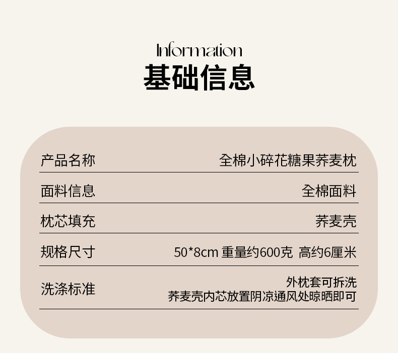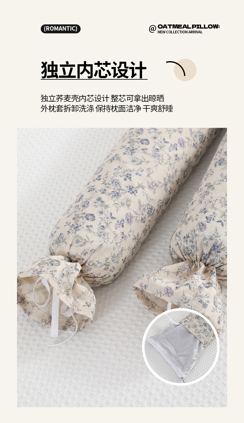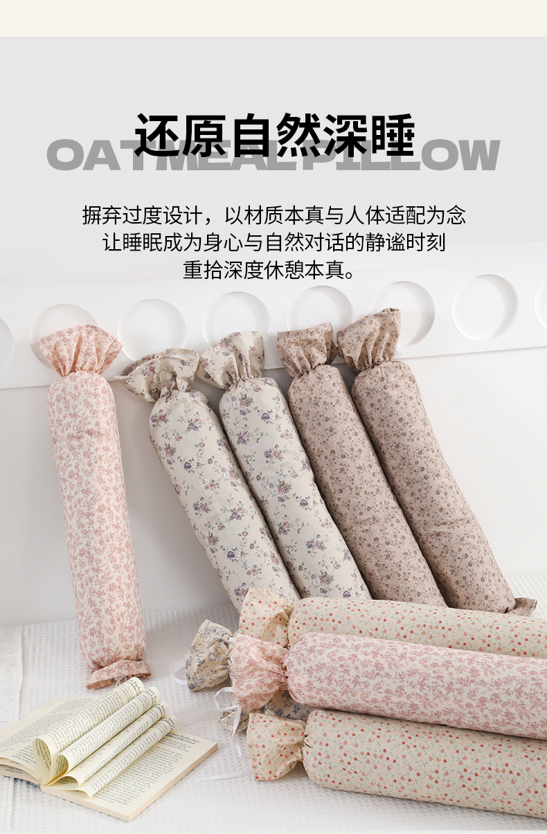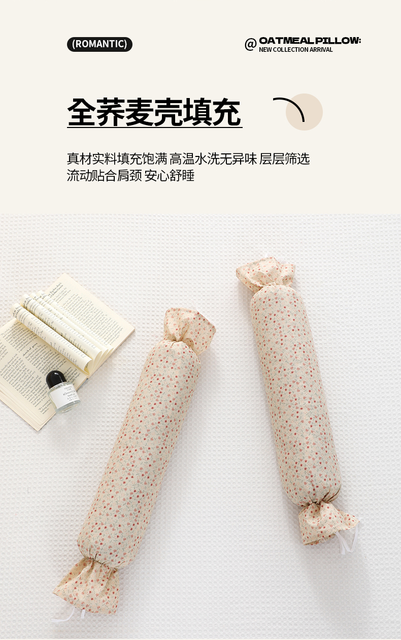 商品名称:(总)仁宇枕业 2026新款新品全棉小碎花糖果枕头圆形颈椎荞麦枕头枕芯