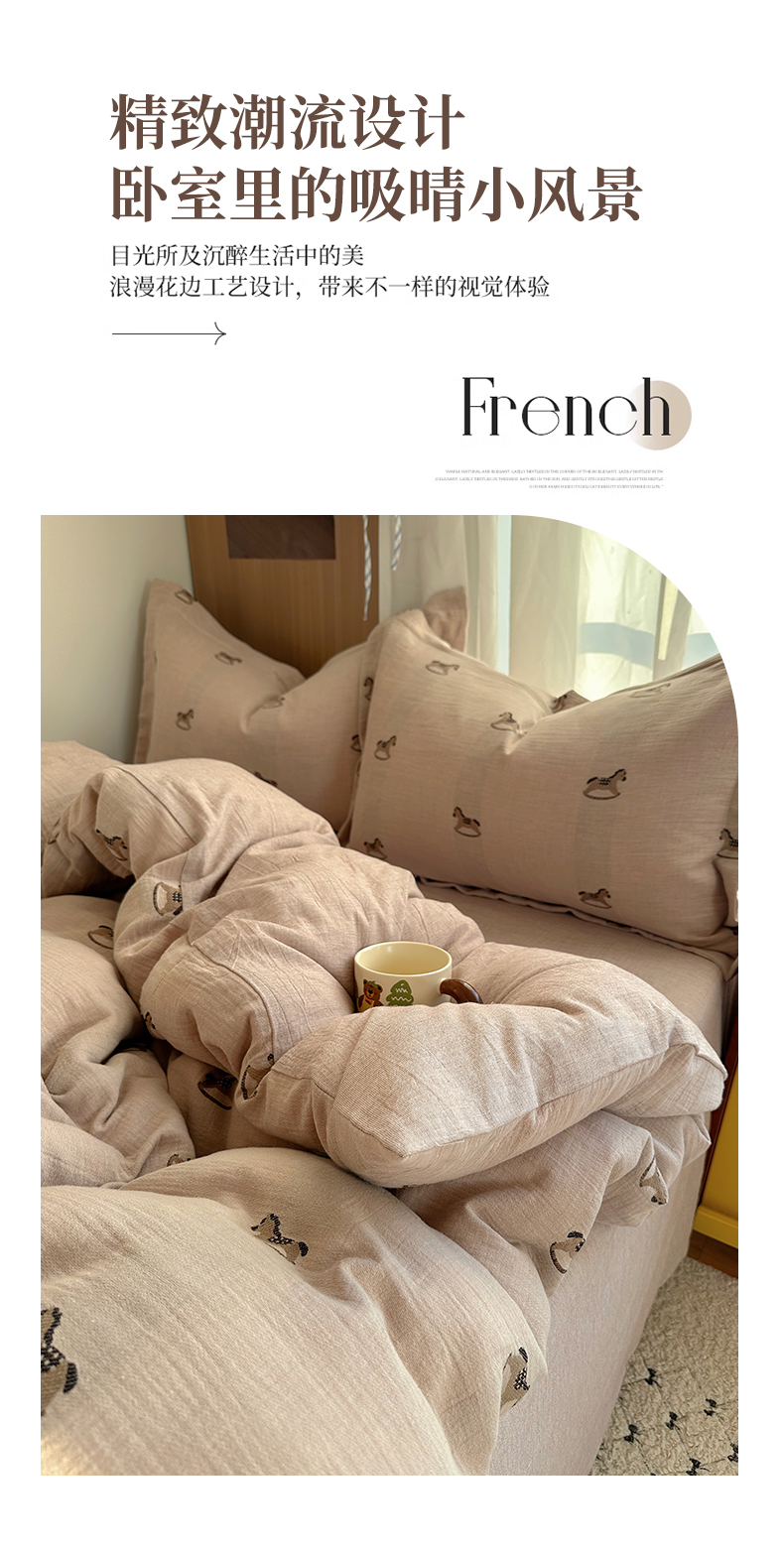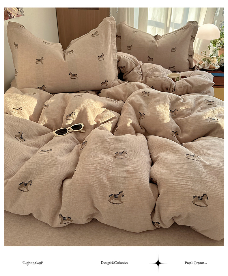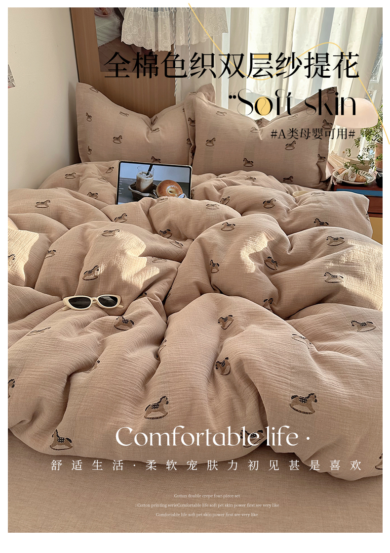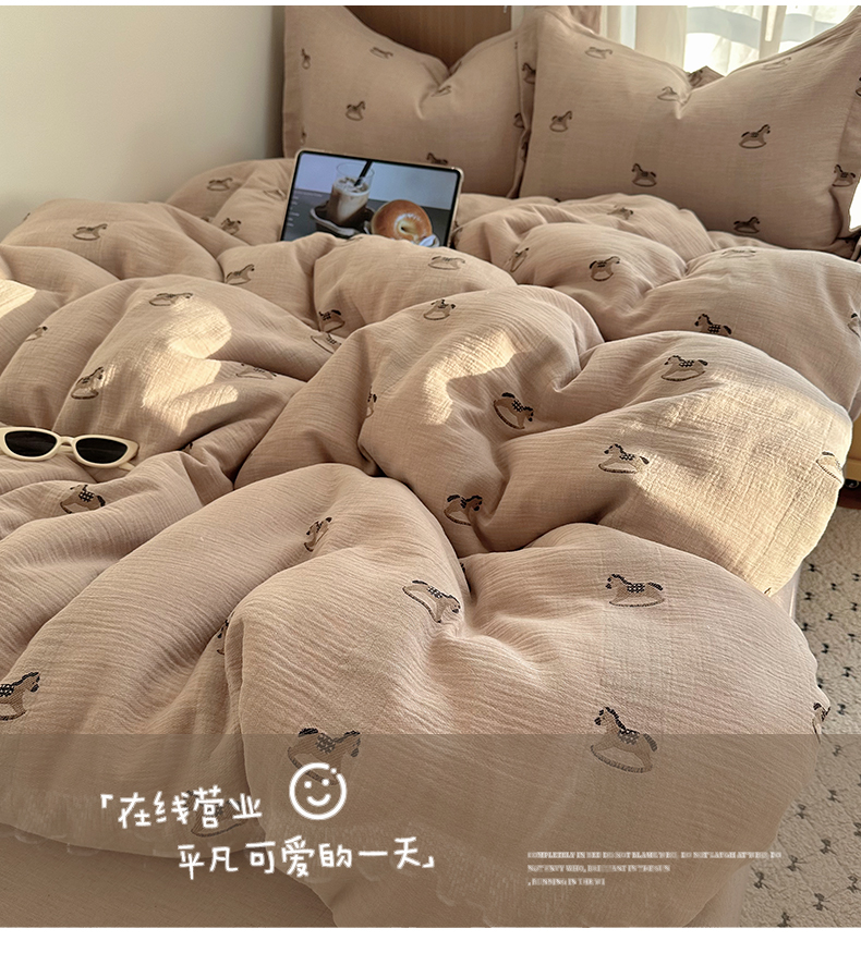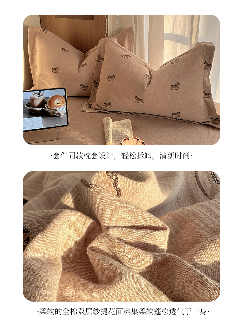 当前位置: 91家纺网 > 商品网购 > 床品套件 > 四件套 > 全棉普通四件套 > 萝莉家纺 2026新款全棉纯棉色织双层纱提花四件套 翘翘马