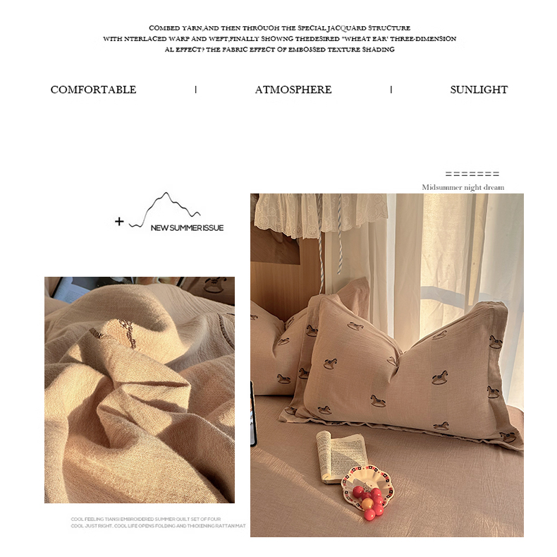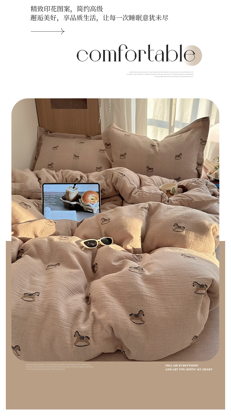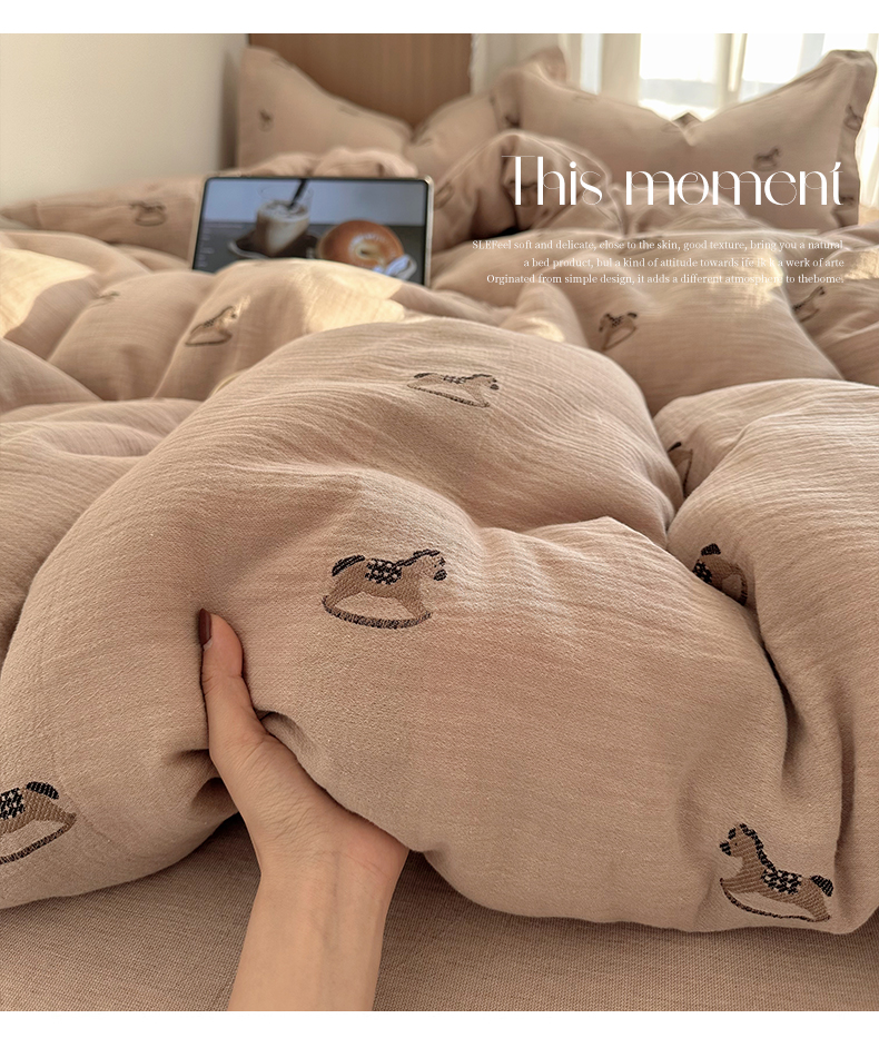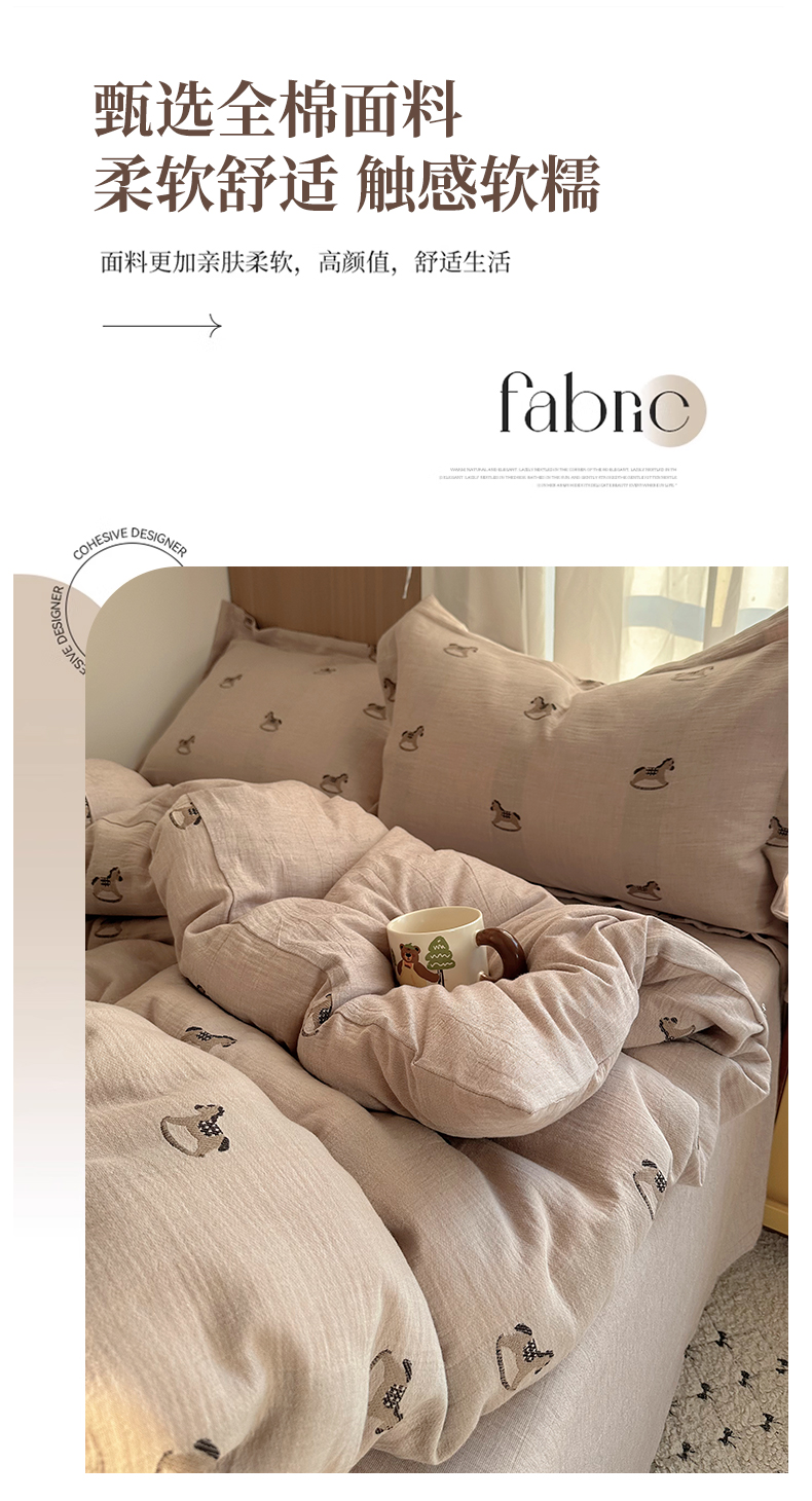 当前位置: 91家纺网 > 商品网购 > 床品套件 > 四件套 > 全棉普通四件套 > 萝莉家纺 2026新款全棉纯棉色织双层纱提花四件套 翘翘马