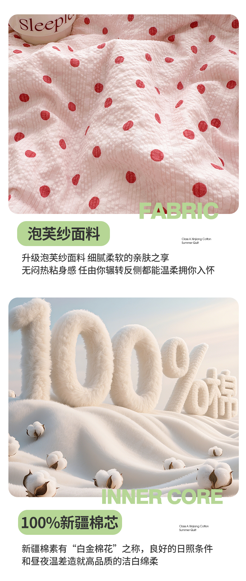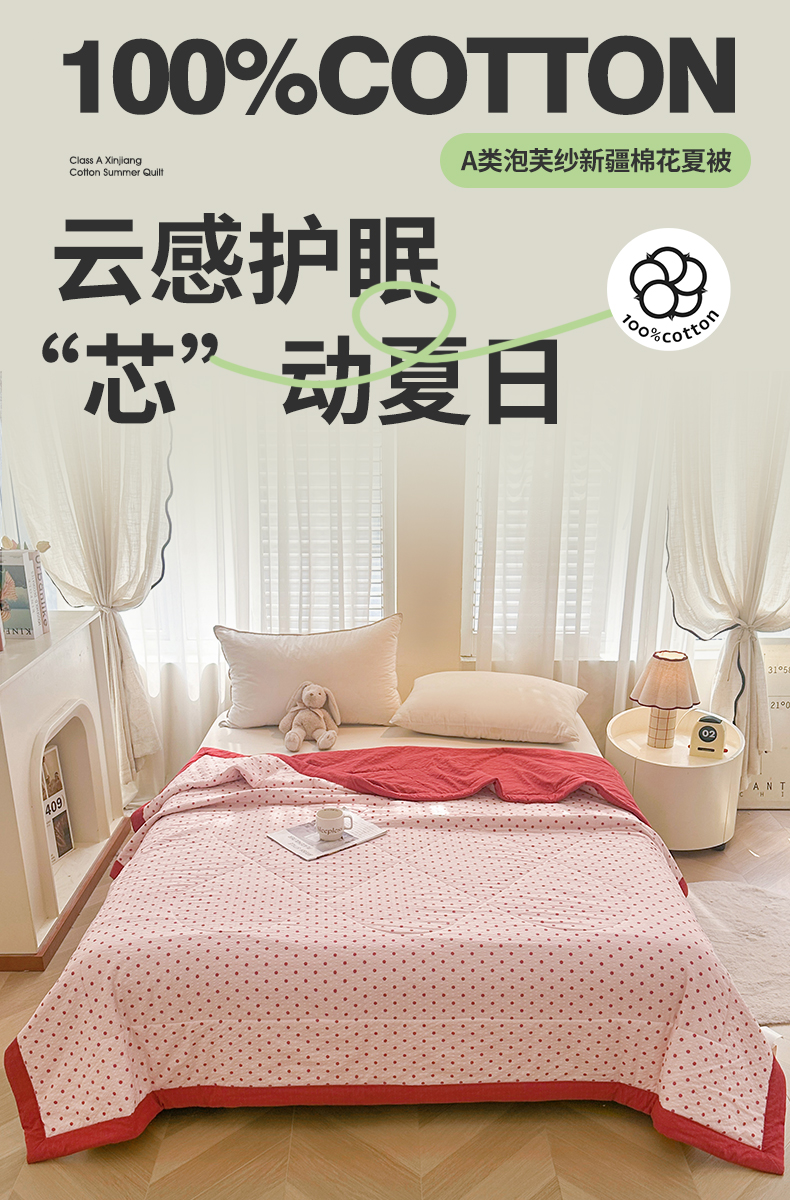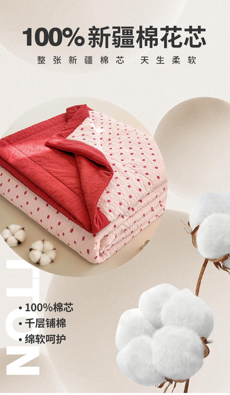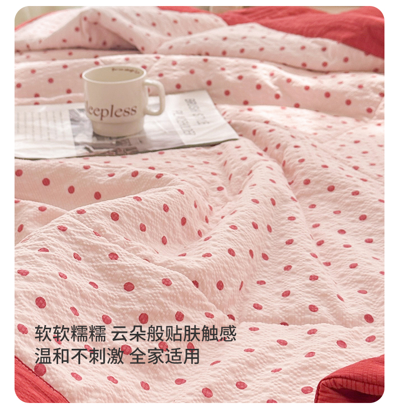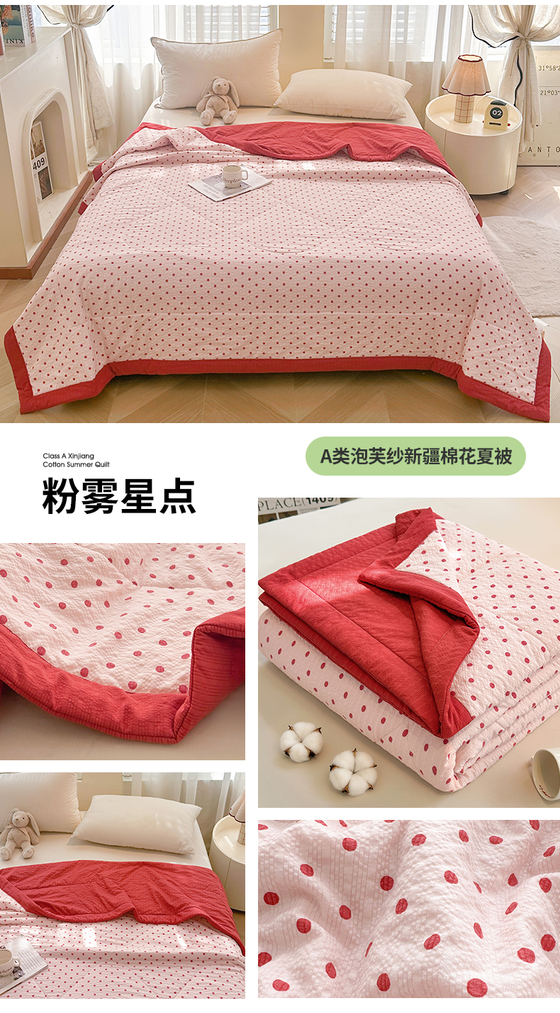 魅图家纺 2026新款泡芙纱新疆棉花夏被 粉雾星点