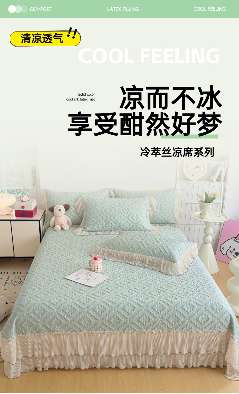(总)锦格2025年新款A类冰感凉豆豆床裙席,素夏-抹茶绿,素夏-蜜桃粉,素夏-奶油黄,素夏-青果绿,素夏-天空蓝,素夏-月光灰
